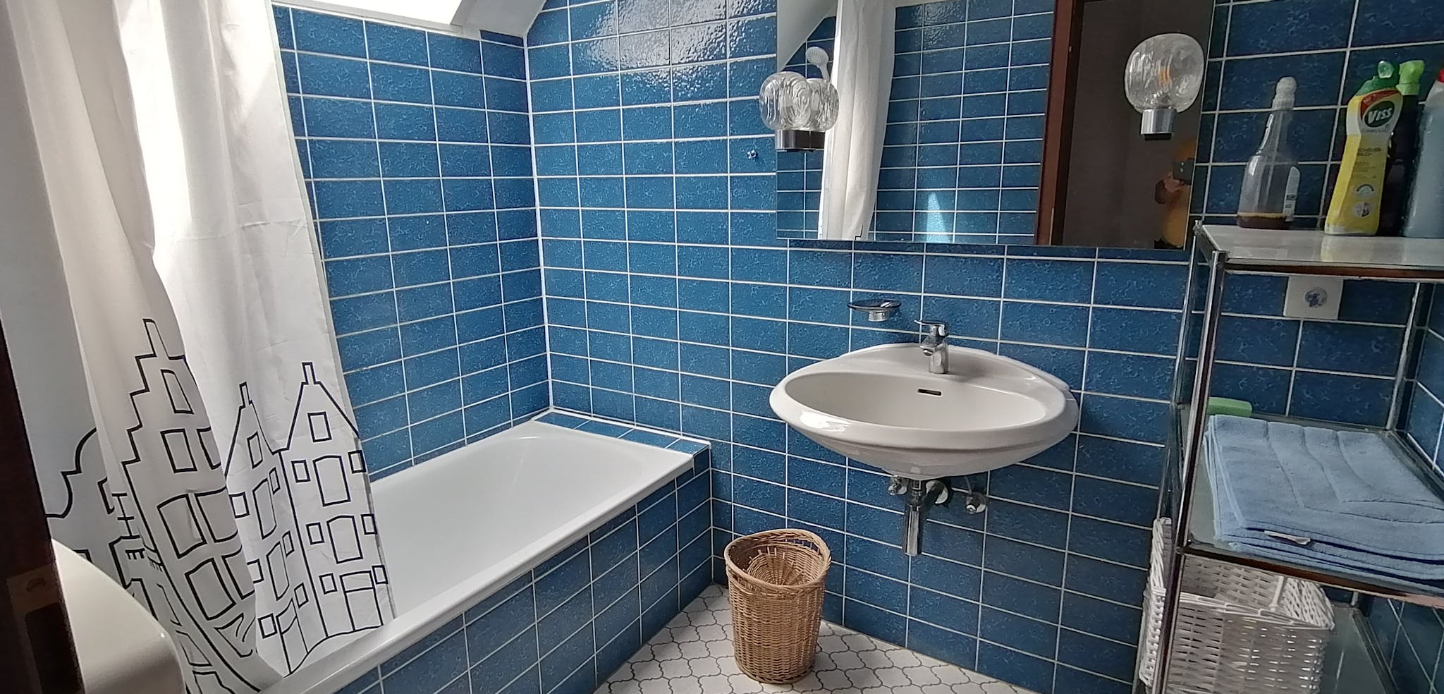 Ideal for two persons: a spacious Loggia is linked to the room facing south. Bathroom (shower, bathtub, WC) to be shared with one other room.