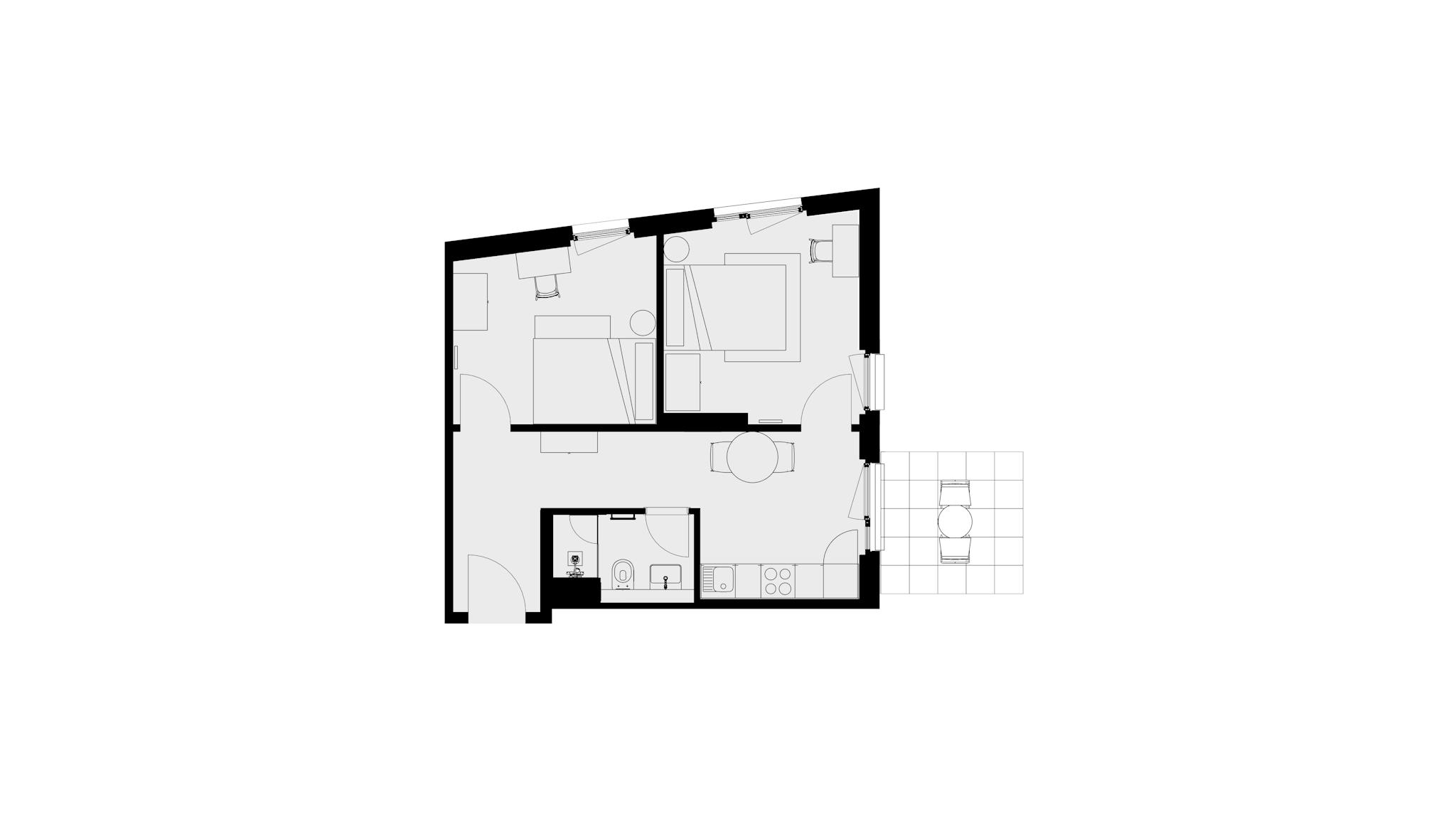 Welcome to your own cozy retreat. Part of our brand new apartments in Leipzig, your private bedroom is thoughtfully designed with a comfy bed, bedside tables, plenty of storage for your things, and a desk that’s perfect for working or studying from home.