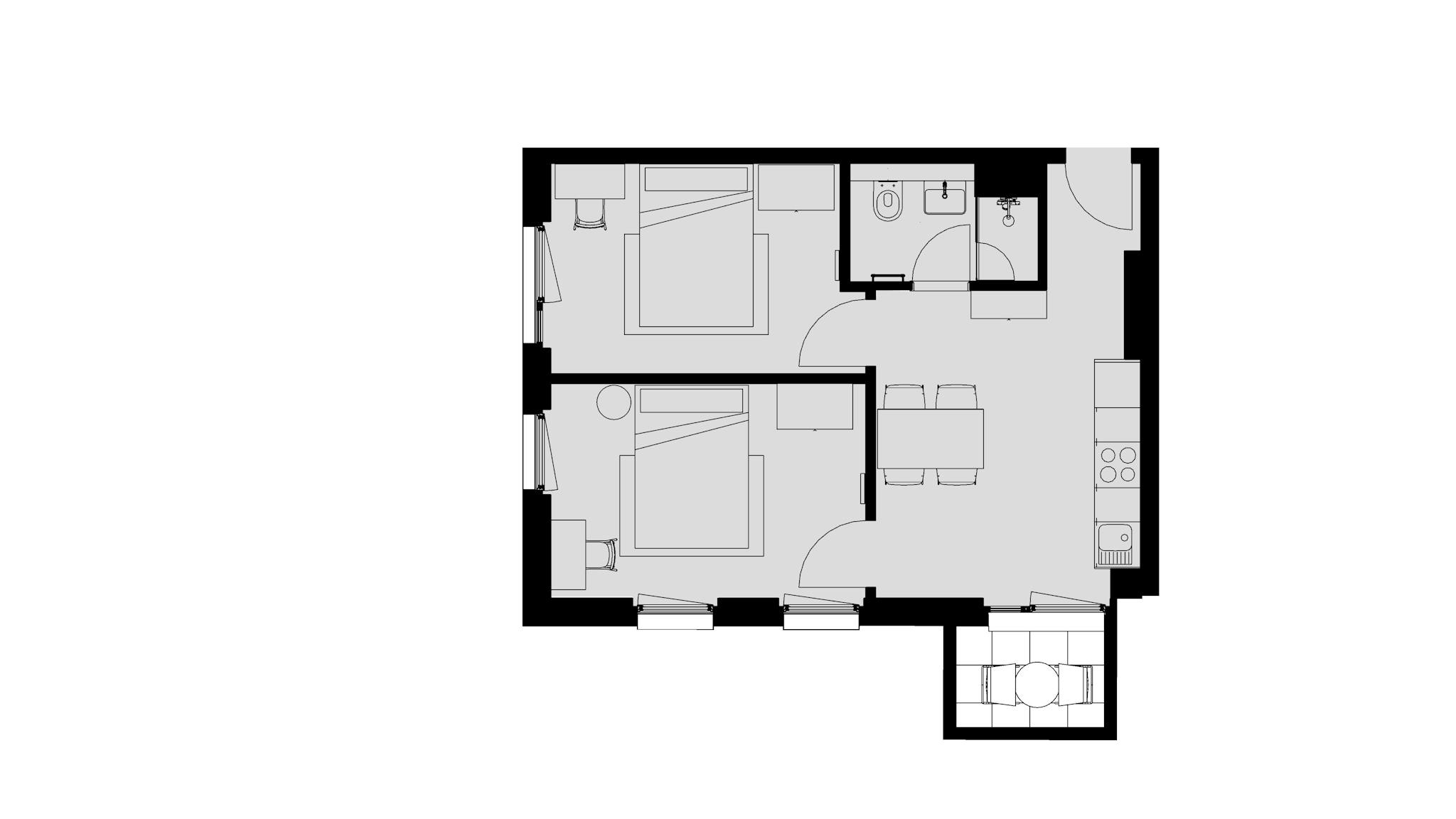 Welcome to your own cozy retreat. Part of our brand new apartments in Leipzig, your private bedroom is thoughtfully designed with a comfy bed, bedside tables, plenty of storage for your things, and a desk that’s perfect for working or studying from home.