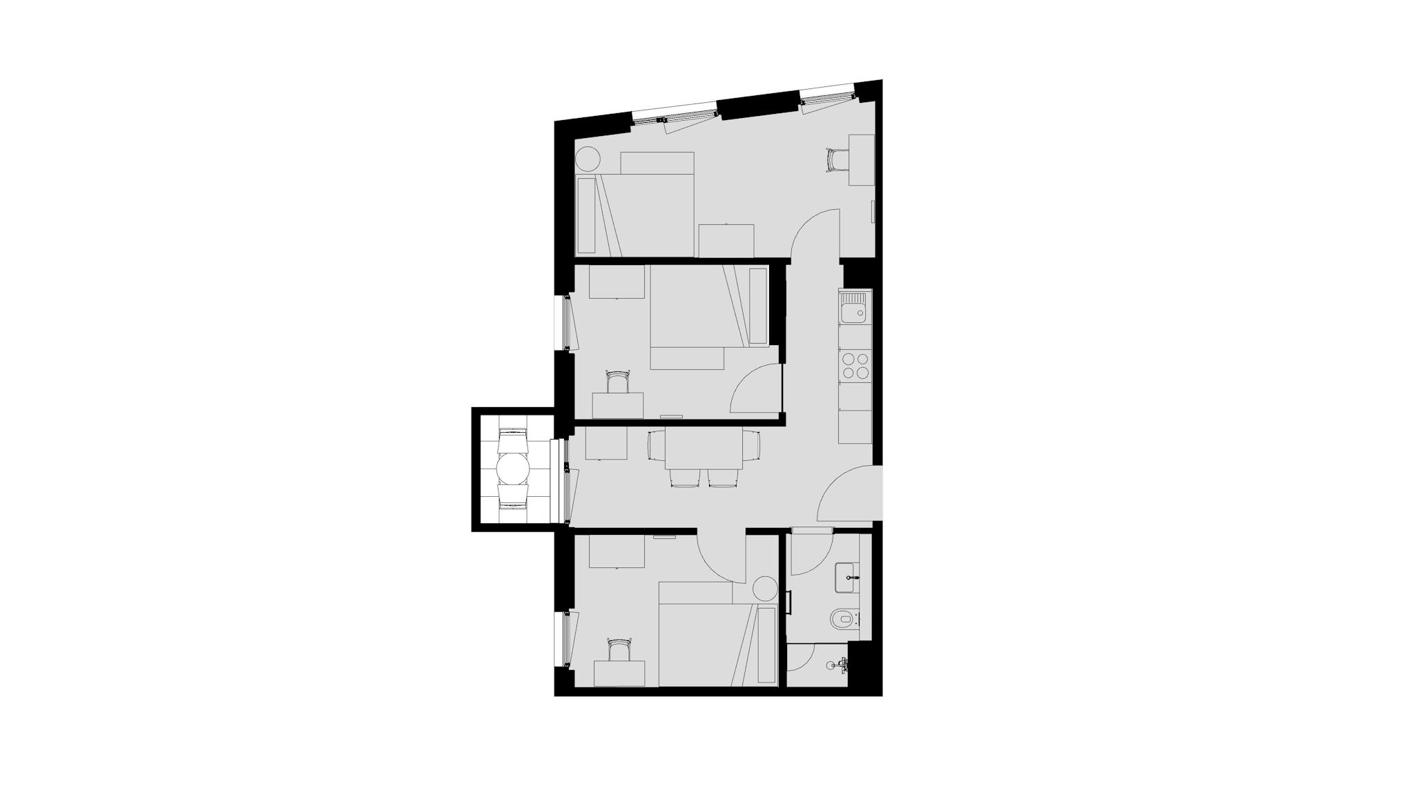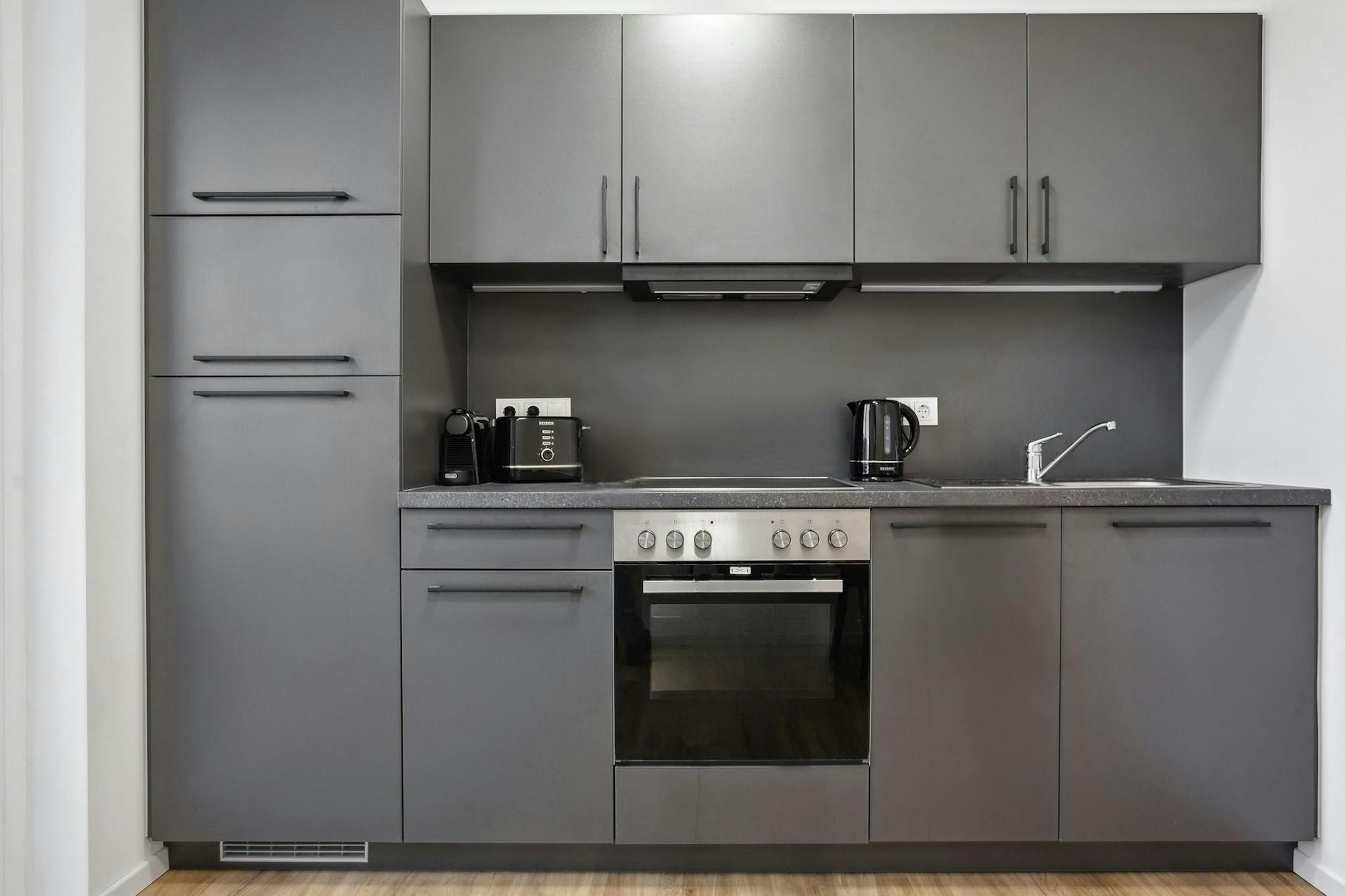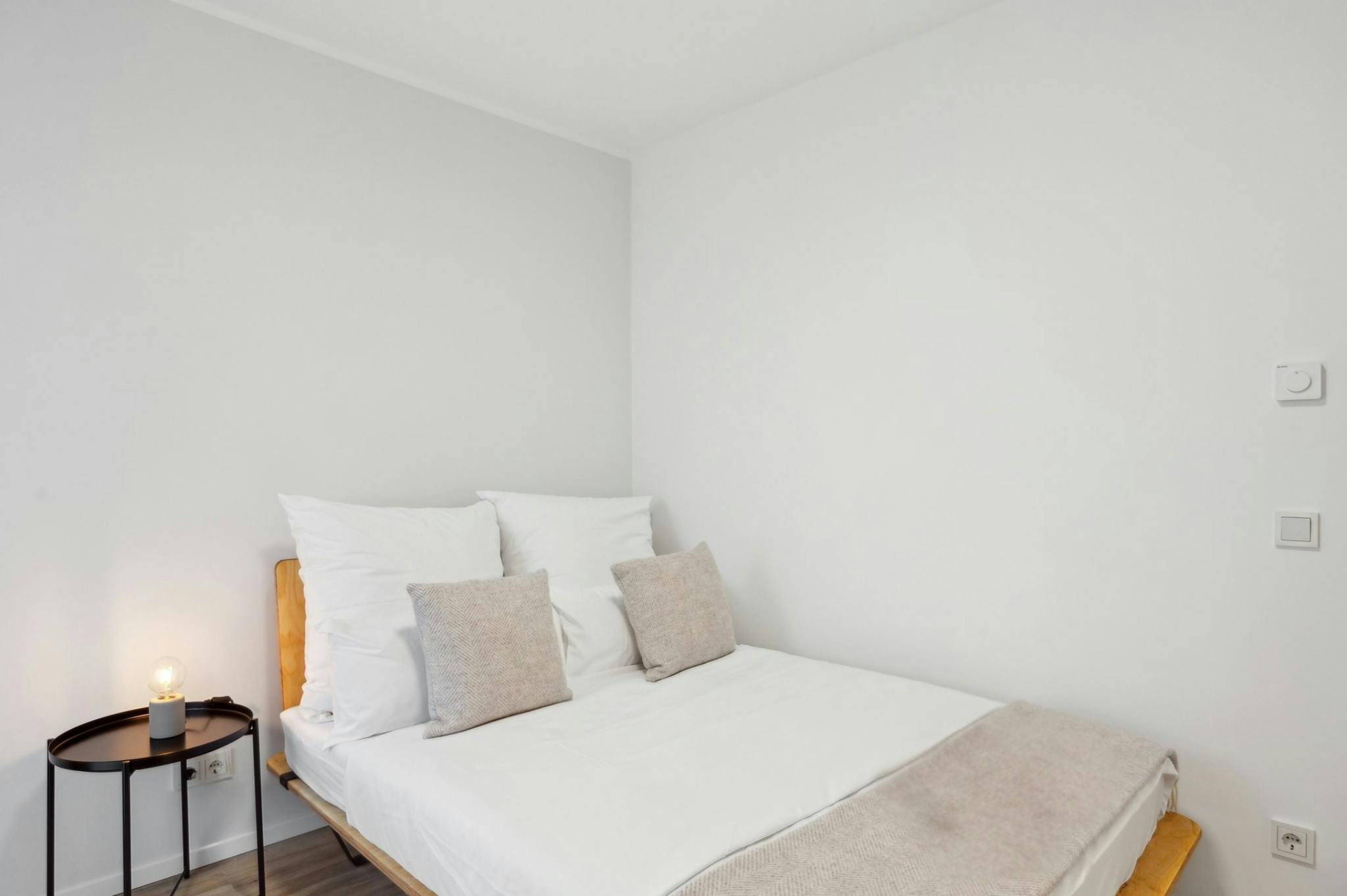 Welcome to your own cozy retreat. Part of our brand new apartments in Leipzig, your private bedroom is thoughtfully designed with a comfy bed, bedside tables, plenty of storage for your things, and a desk that’s perfect for working or studying from home.