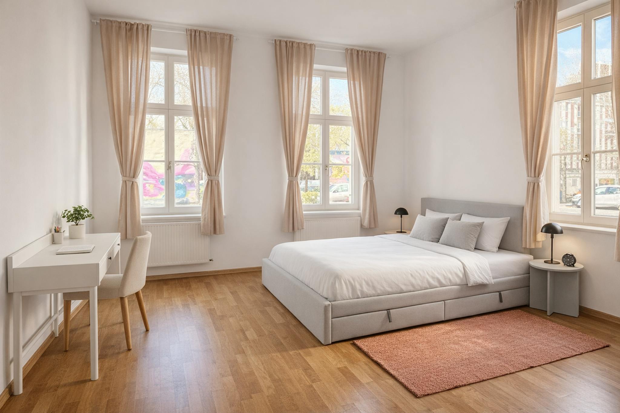 The apartment has been fully renovated and newly furnished in Spring 2026. With three spacious bedrooms and a separate living room, there is plenty of room for a family or a flat share. The apartment is fully equipped. There is also high speed internet available. “Anmeldung” is possible.