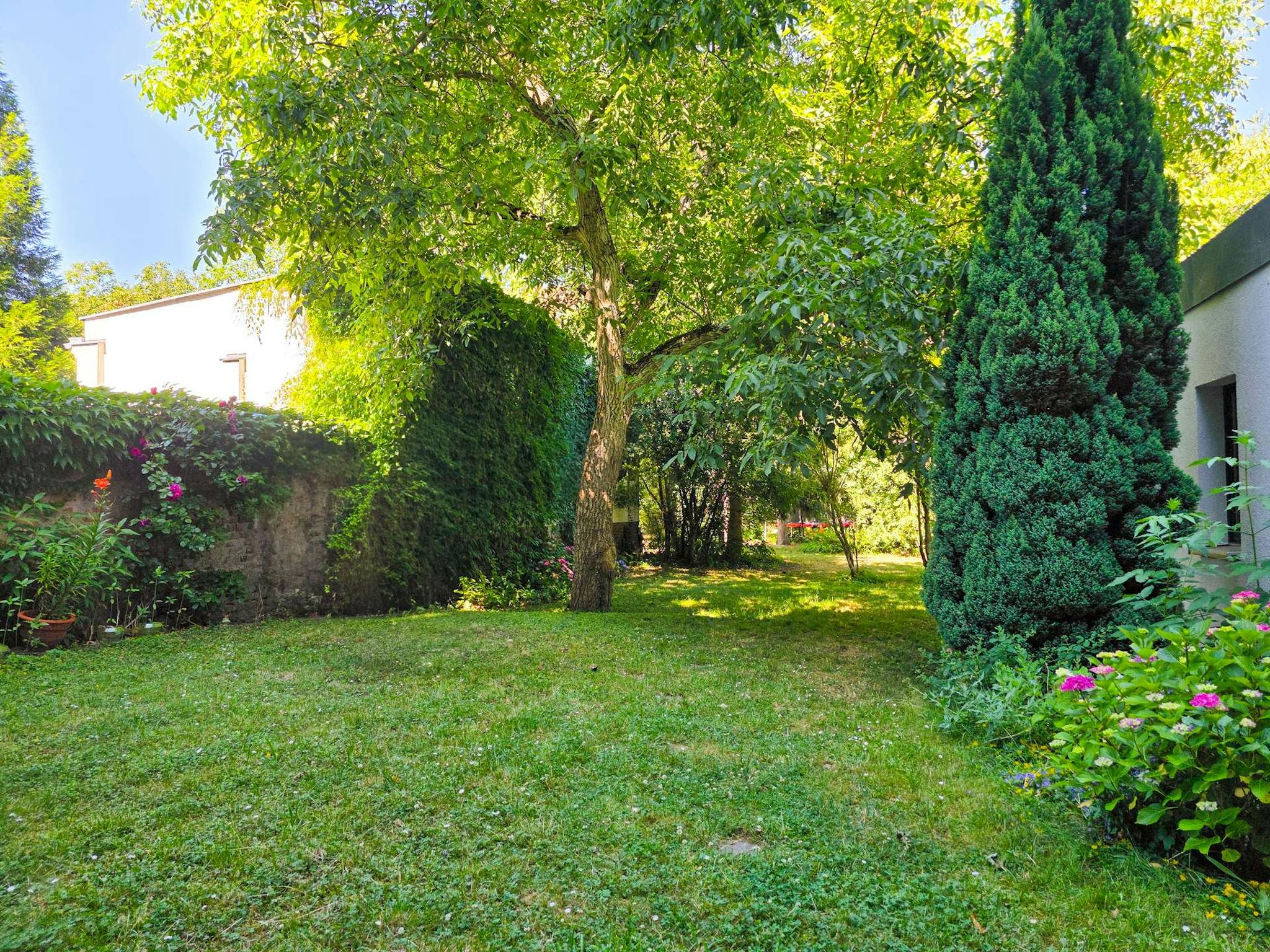Zum Haus gehört außerdem ein großer Garten mit Sitzmöglichkeiten, viel Sonne im Sommer und ausreichend Platz zum Grillen oder Entspannen.