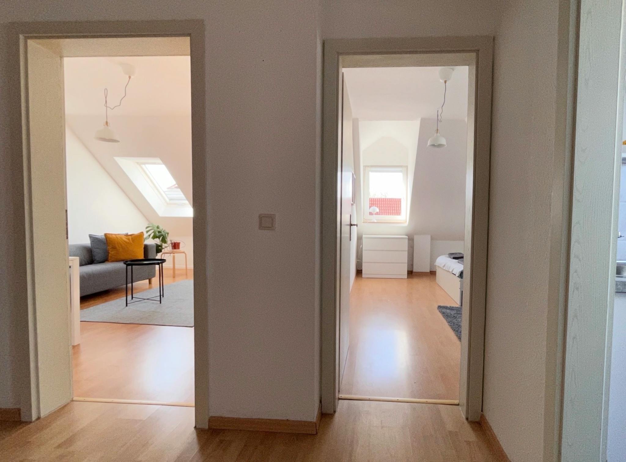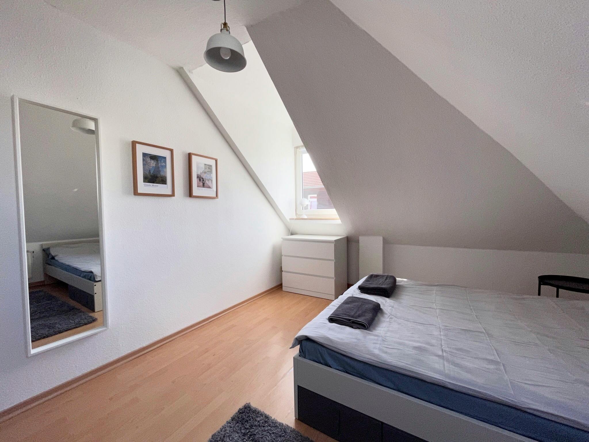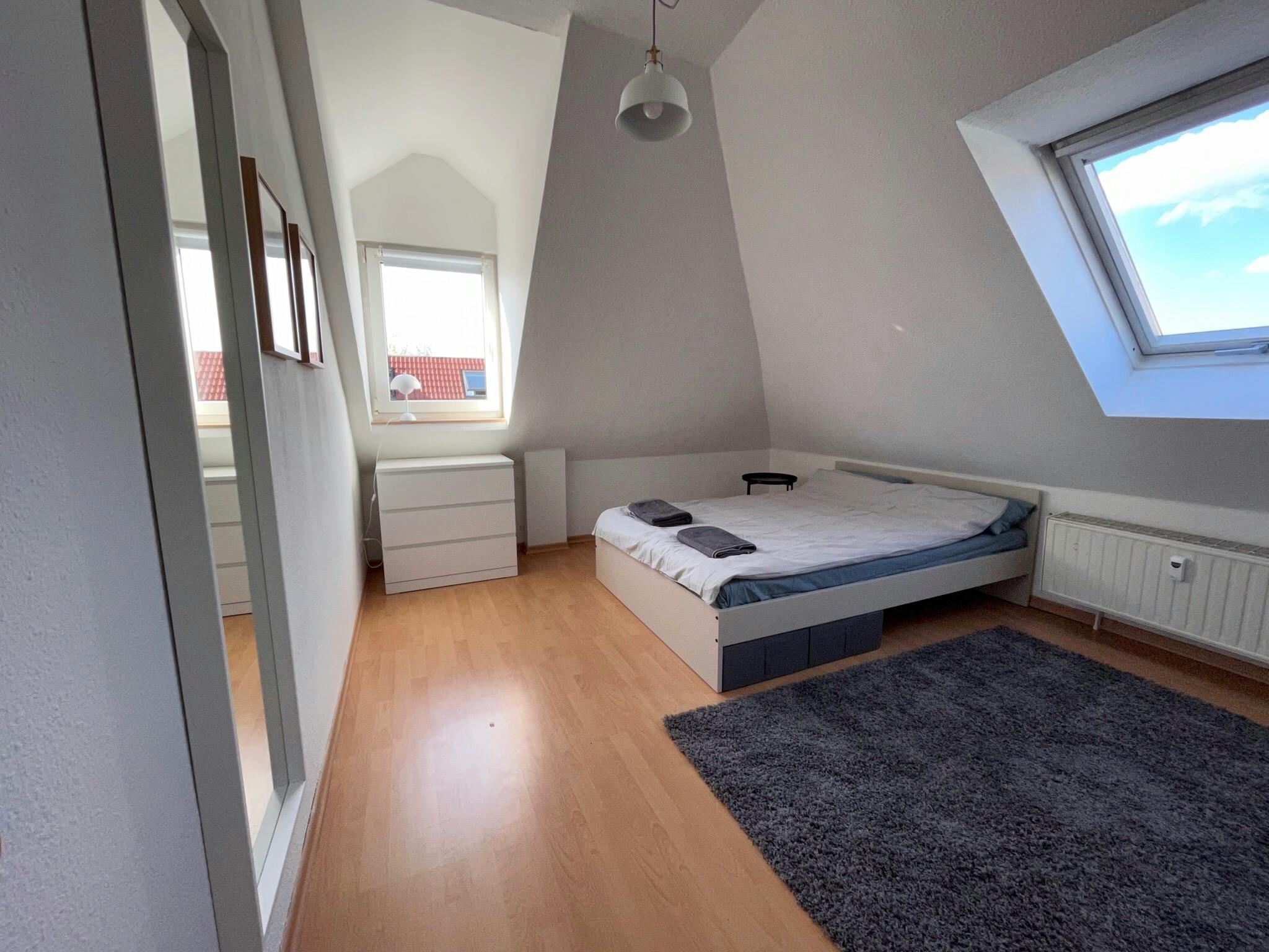 Non-SmokingNot allowedThis 48 sqm rooftop apartment in Leipzig-Leutzsch is in a convenient location, just a 3-minute walk from supermarkets and the tram station, with a 20-minute connection to the main station.