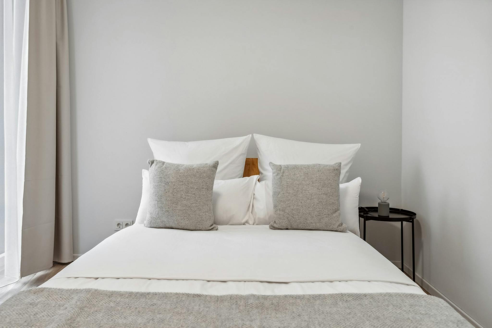 Welcome to your own cozy retreat. Part of our brand new apartments in Leipzig, your private bedroom is thoughtfully designed with a comfy bed, bedside tables, plenty of storage for your things, and a desk that’s perfect for working or studying from home.