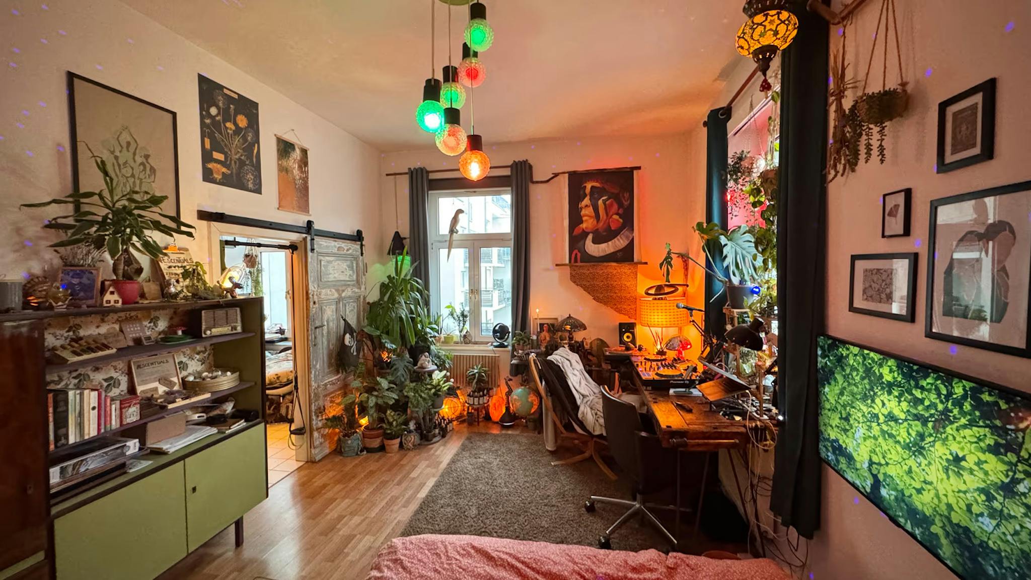 ☯︎ Cozy living room: Large desk, comfortable mattress, multiroom sound system, aroma diffuser & air purifier.