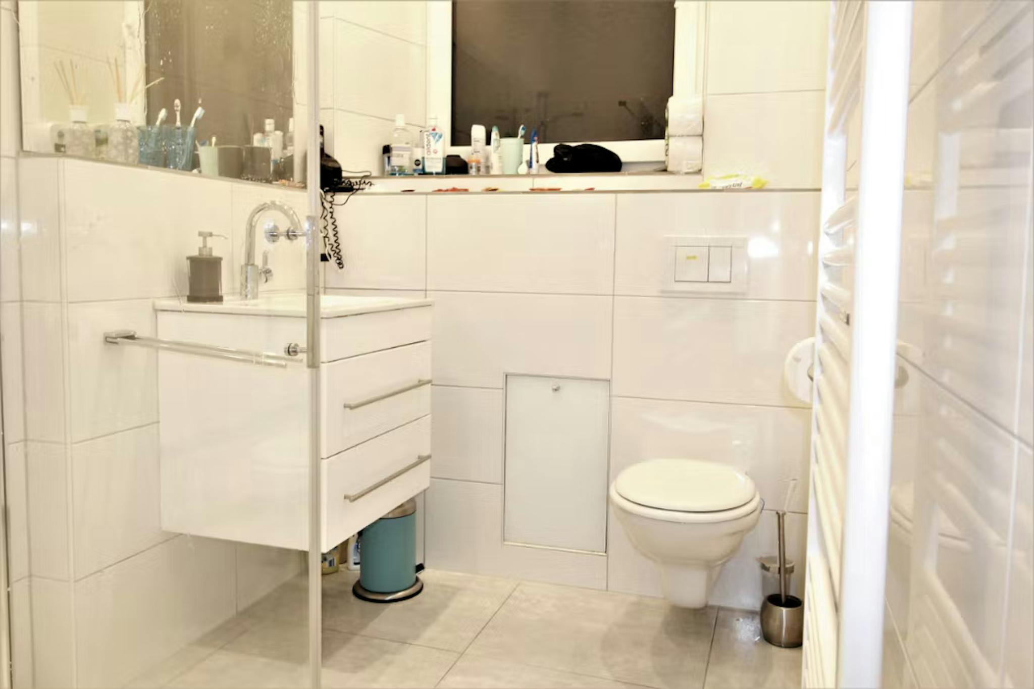 Das Badezimmer ist sehr hell mit Fenster und toller Dusche.