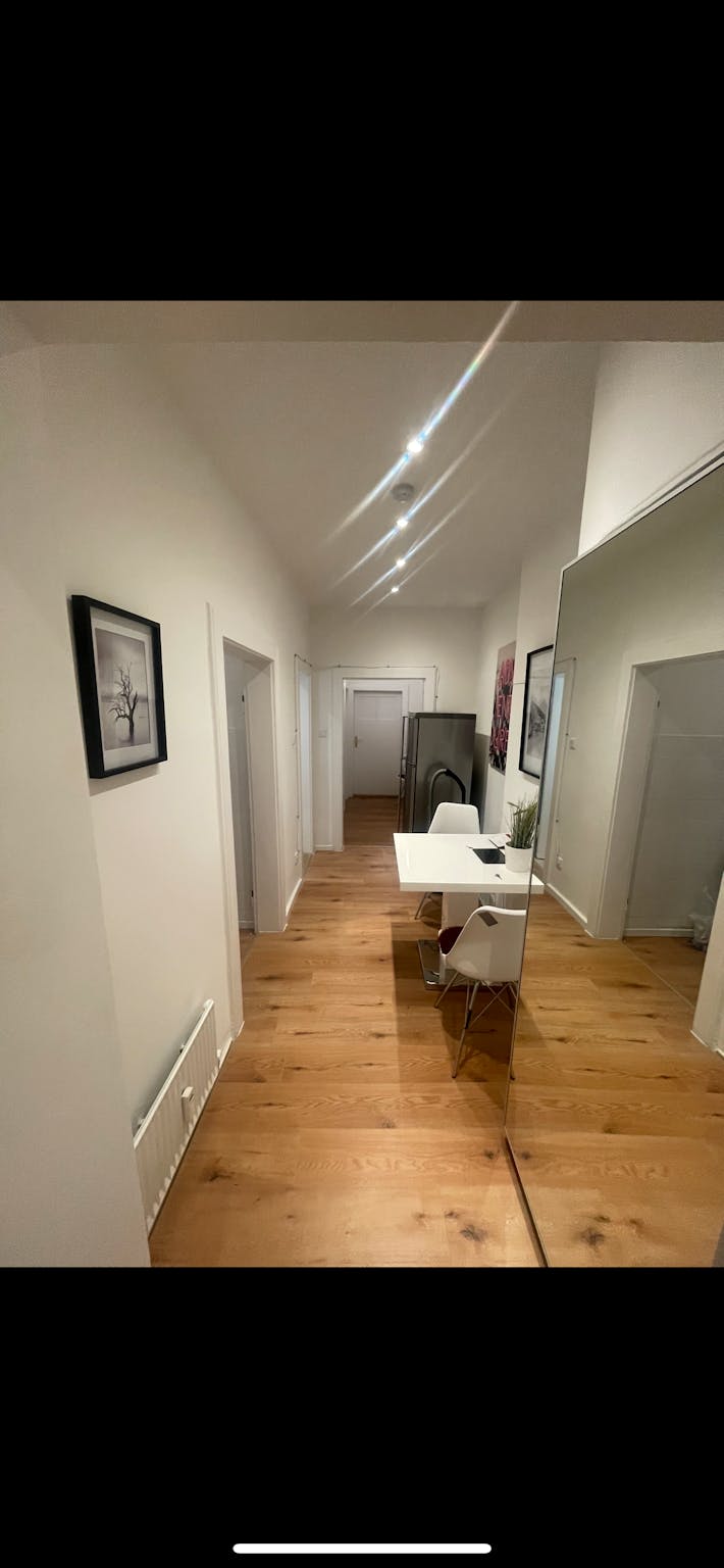 This charming private room on Jutastraße in Munich measures 18 m2, providing a spacious and comfortable living area. It is furnished with a cozy bed, a sizable wardrobe, and a desk, perfect for both relaxation and productivity. The apartment itself is 90 m2 and shared with friendly housemates. The room is equipped with central heating and high-speed WiFi, ensuring a warm and connected environment throughout the year.