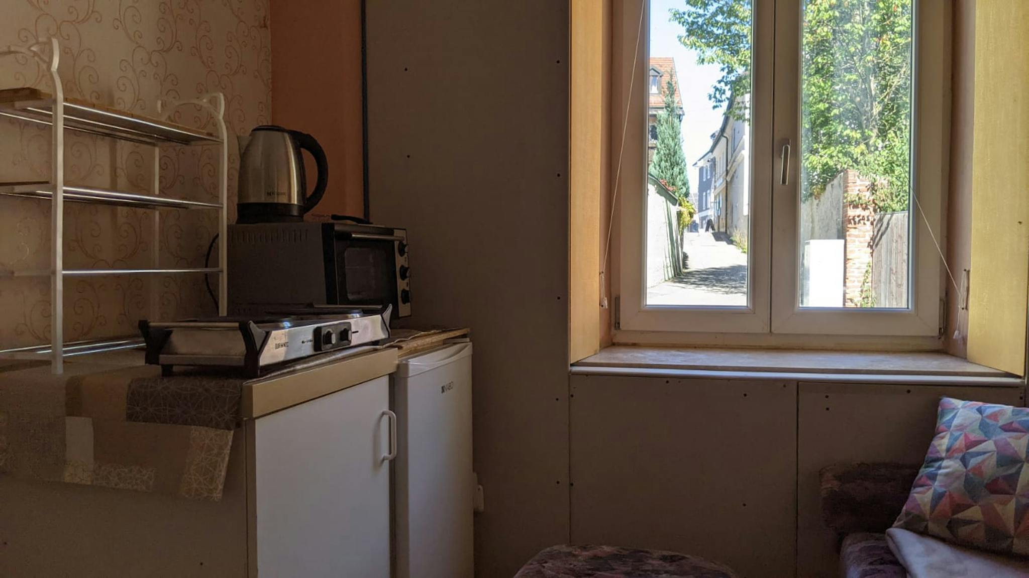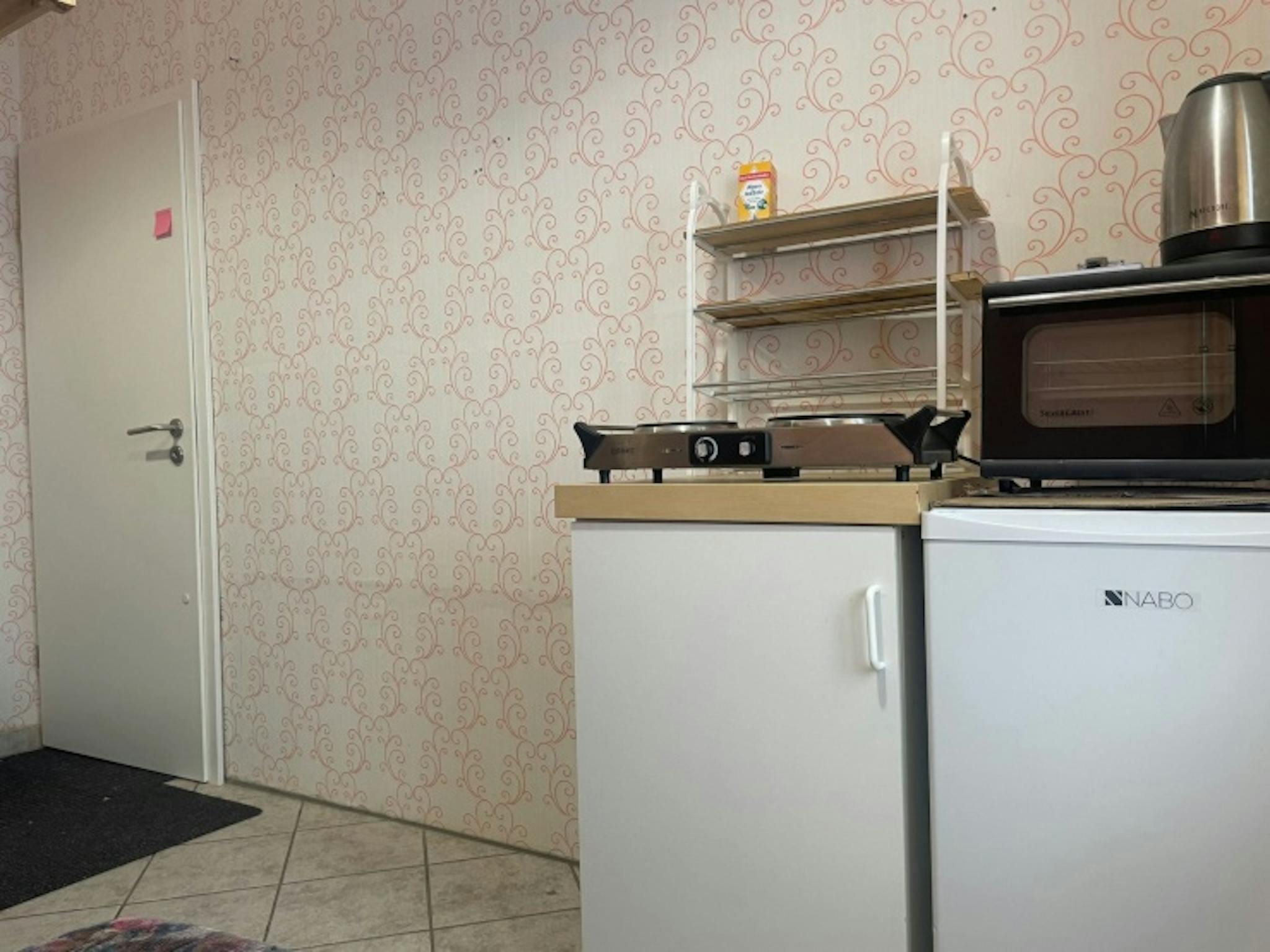 - Das Zimmer ist voll möbliert mit Kochgelegenheit und hell, aber nur 9 Quadratmeter groß.