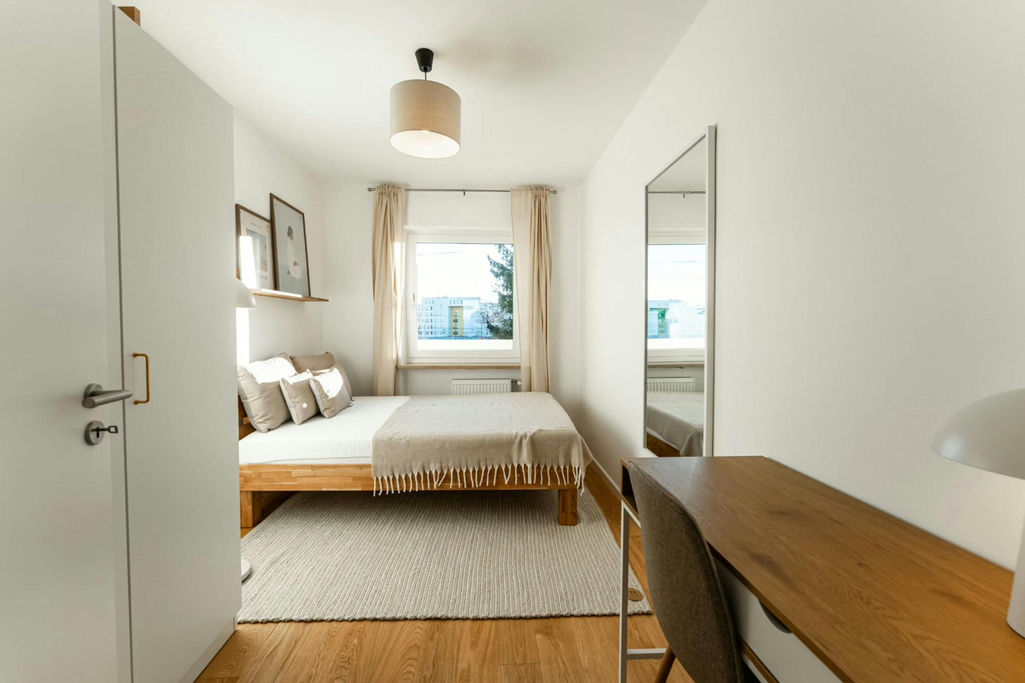 The apartment is located in the Pasing district of Munich. The location impresses with its quiet residential atmosphere and excellent transport links: Pasing train station, numerous shops, cafes and restaurants are just a few minutes away. Green spaces and the Würm river provide ample recreational opportunities right on the doorstep.