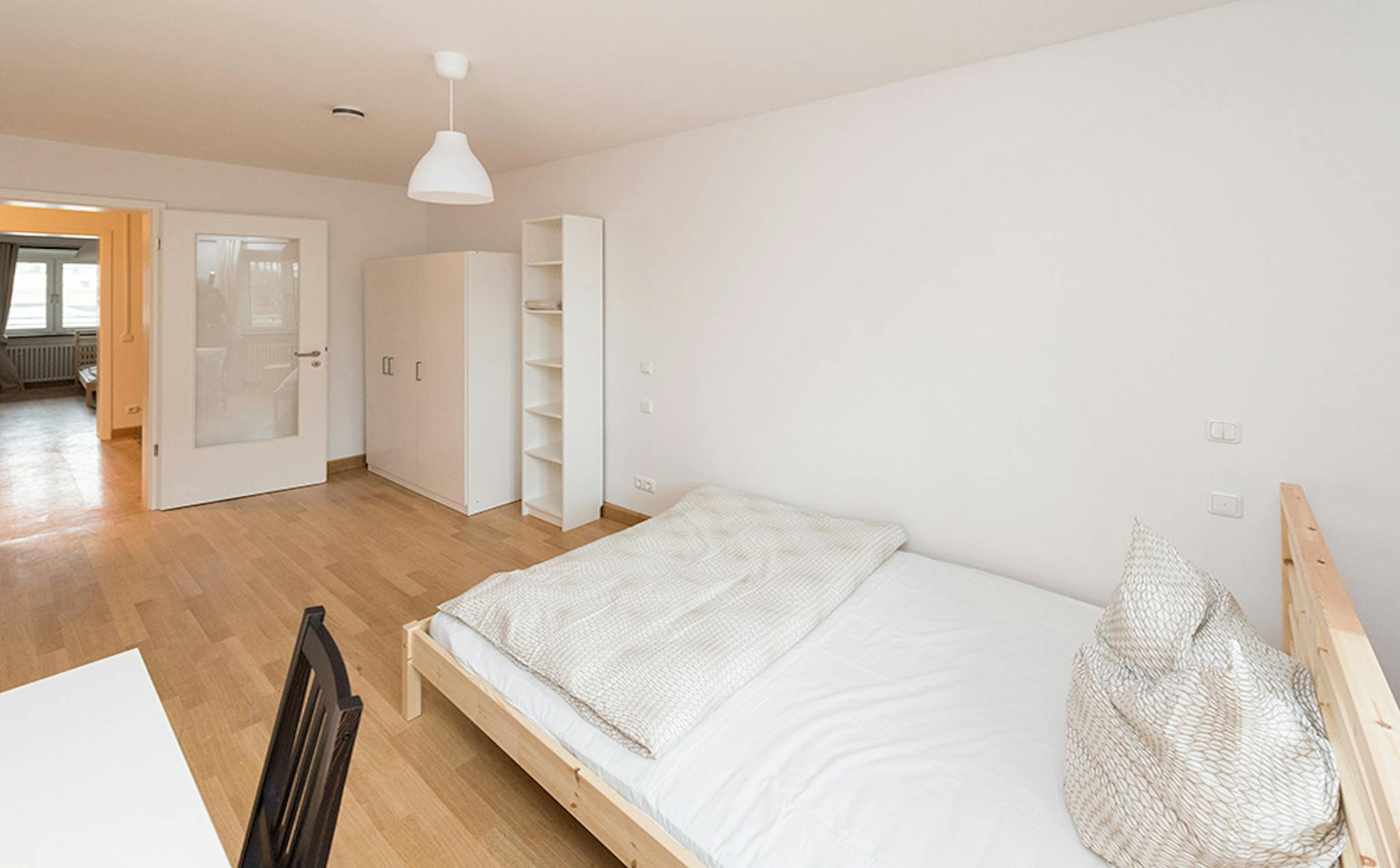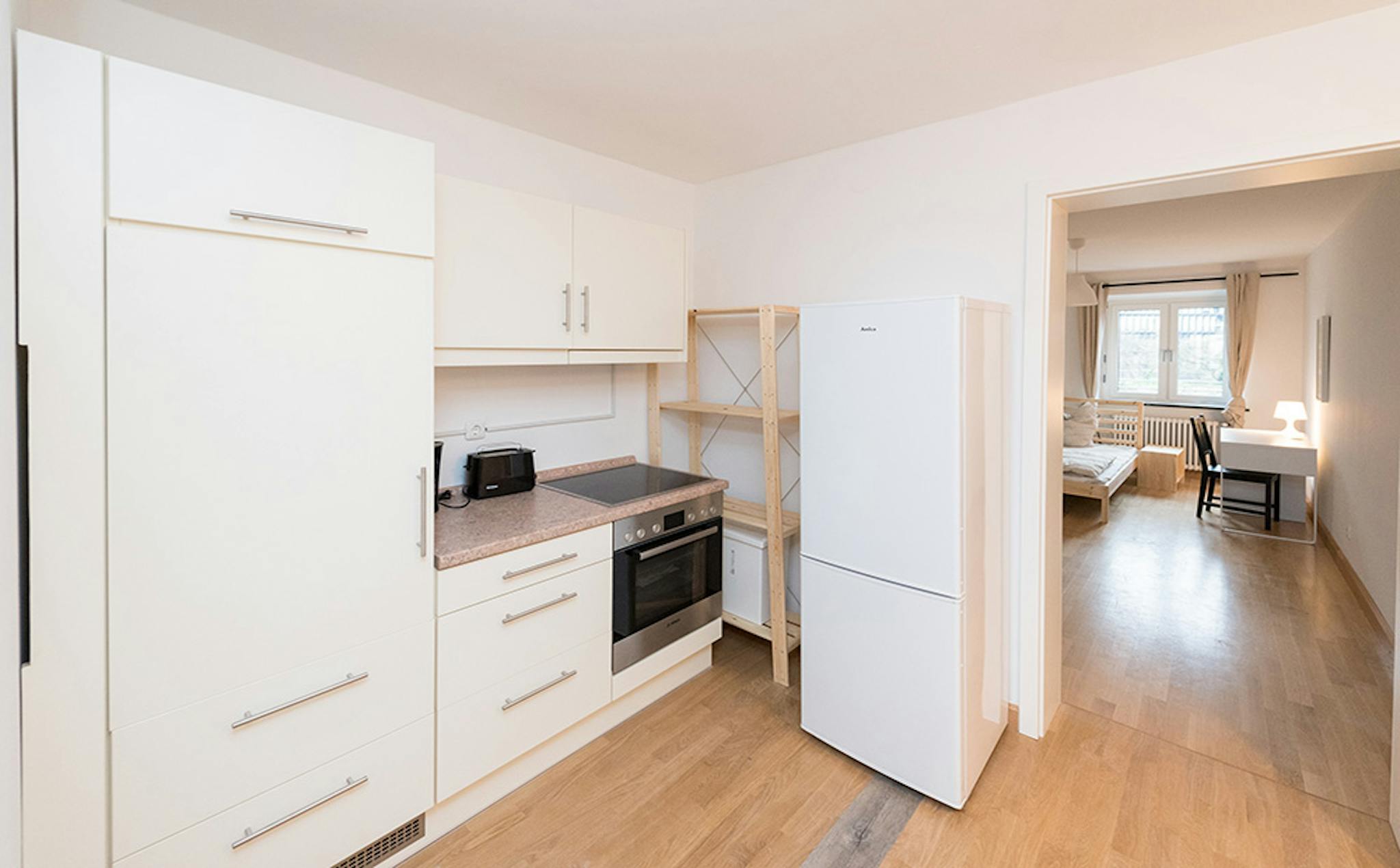 Our flats fulfil all your daily living requirements. Every flat comes readily equipped with a kitchen, including refrigerator, cooking equipment and dishes. Flats also include a washing machine and Wi-Fi Internet. Each room is fully furnished and offers a comfortable bed with fresh linen and a workspace. The area provides you with several shopping opportunities and excellent connections to public transport.