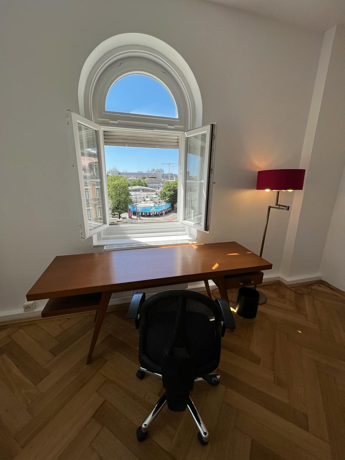 We a looking for one person for our shared 105sqm flat in a beautiful old building in the heart of Munich. The 21sqm south-facing room is equipped with a 2m*2m box spring double bed with bedside table, a desk with office chair and lamp, and a 220cm*75cm PAX wardrobe.