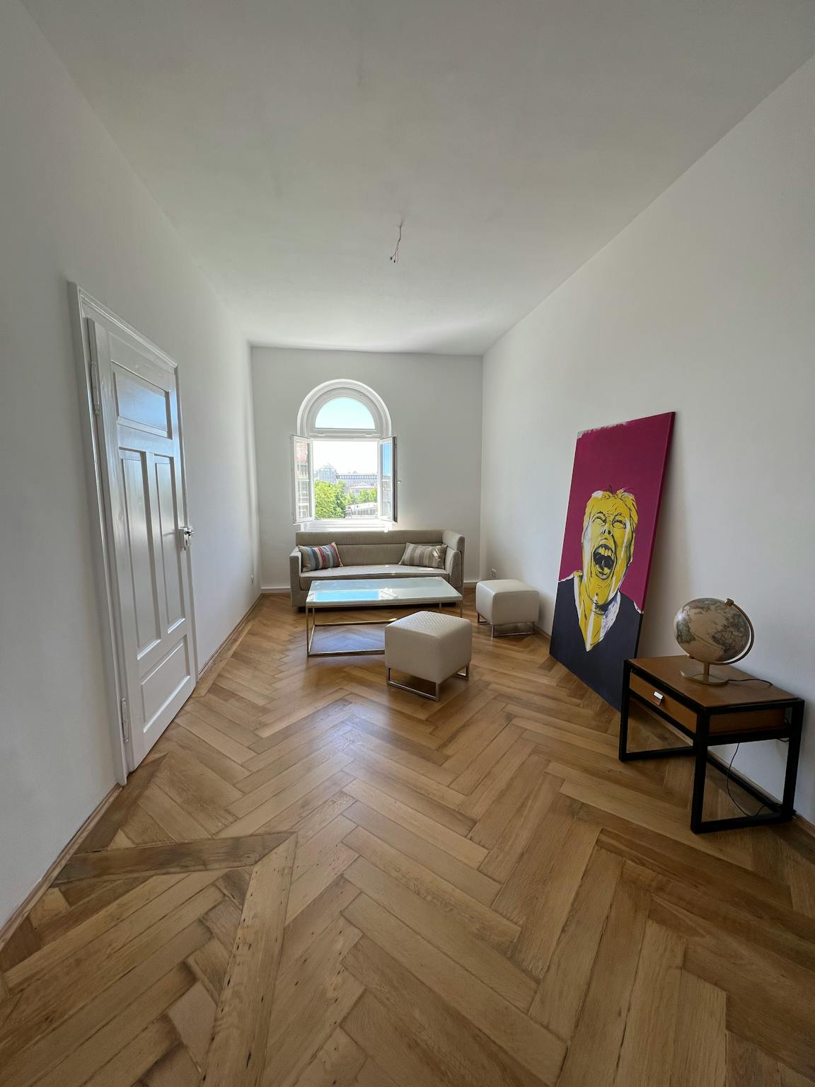 The beautiful old building apartment is furnished, has four light-flooded south-facing rooms with wooden floors and 3m high ceilings and a view of the iconic Circus Krone and the Spaten Brewery, a balcony with a view over the roofs of Munich, a bathroom, a toilet and a kitchen. The apartment is on the fourth floor and has been completely repainted.