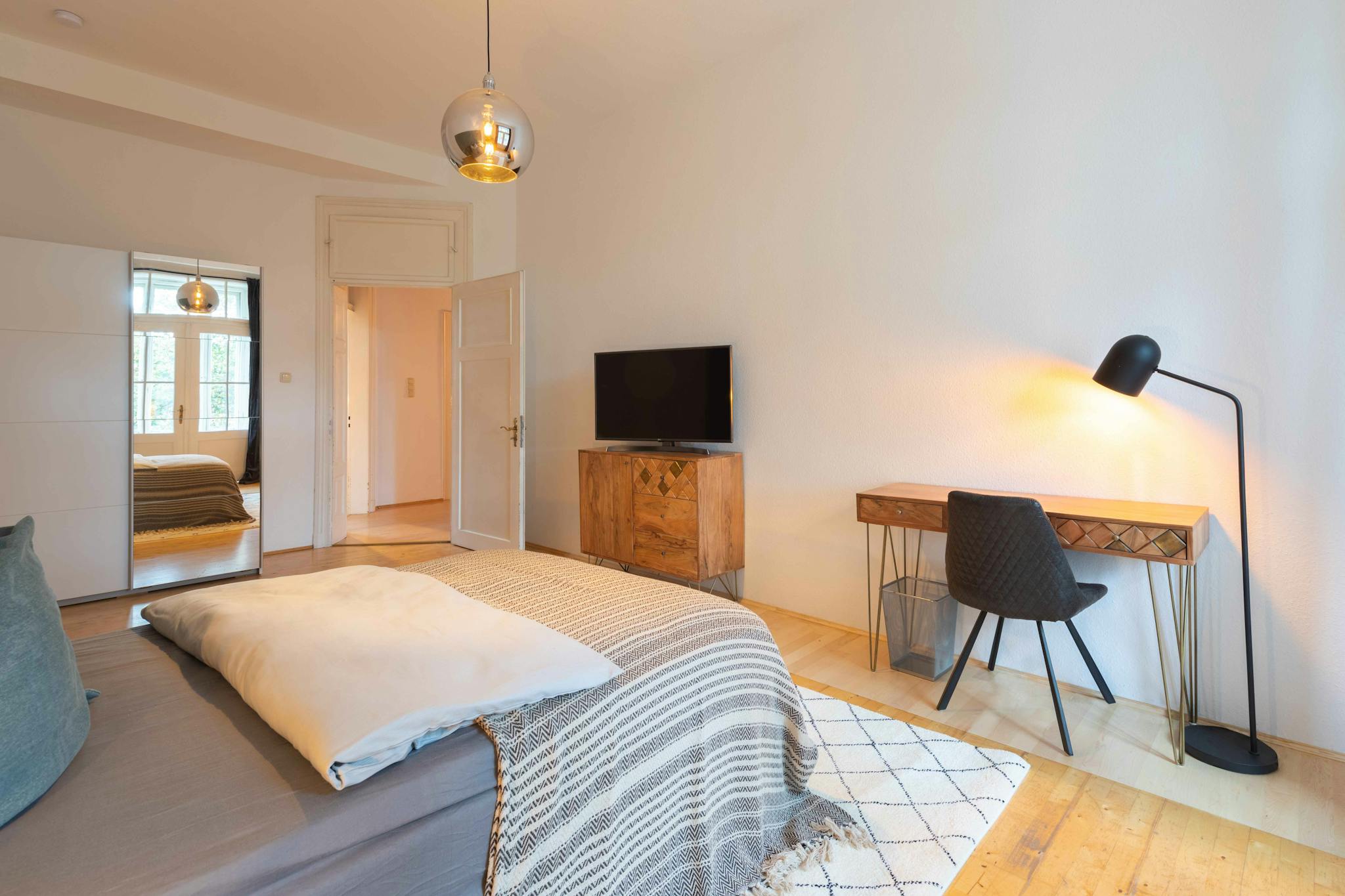 Live just across the Isar, with a beautiful view over the river! Next to the apartment youll find many bars, cafes, restaurants and shops. The apartment in a totally restored 19th century building offers a nice atmosphere, from the impressive entranceway up to the high ceilings and the big windows in all rooms.