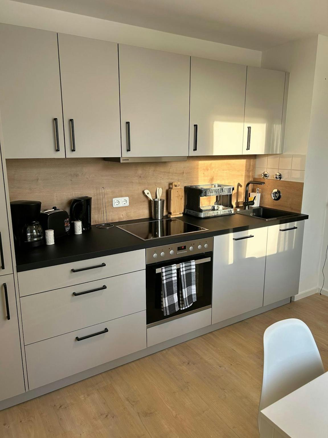 In the apartment, you'll find a shared bathroom and a separate toilet, both of which are well-maintained. The kitchen is fully equipped with essential appliances, including a stove, oven, refrigerator, and microwave, making it easy to prepare meals. Additionally, a washing machine is available for communal use, adding convenience to daily life.