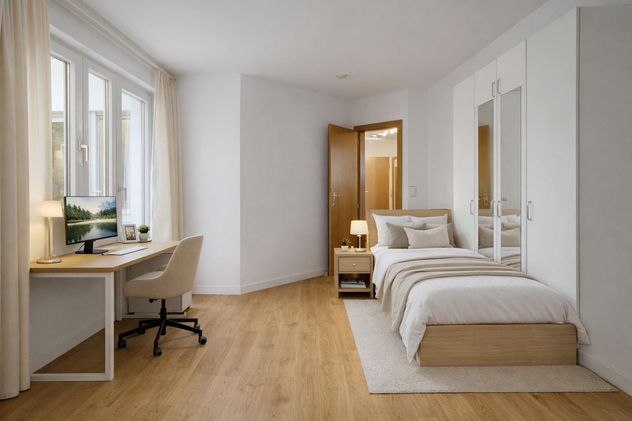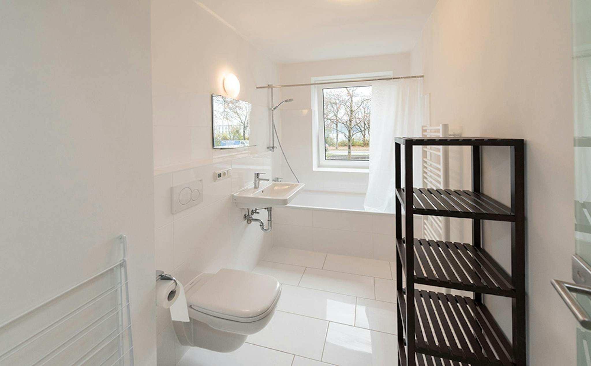 Our flats fulfil all your daily living requirements. Every flat comes readily equipped with a kitchen, including refrigerator, cooking equipment and dishes. Flats also include a washing machine and Wi-Fi Internet. Each room is fully furnished and offers a comfortable bed with fresh linen and a workspace. The area provides you with several shopping opportunities and excellent connections to public transport.