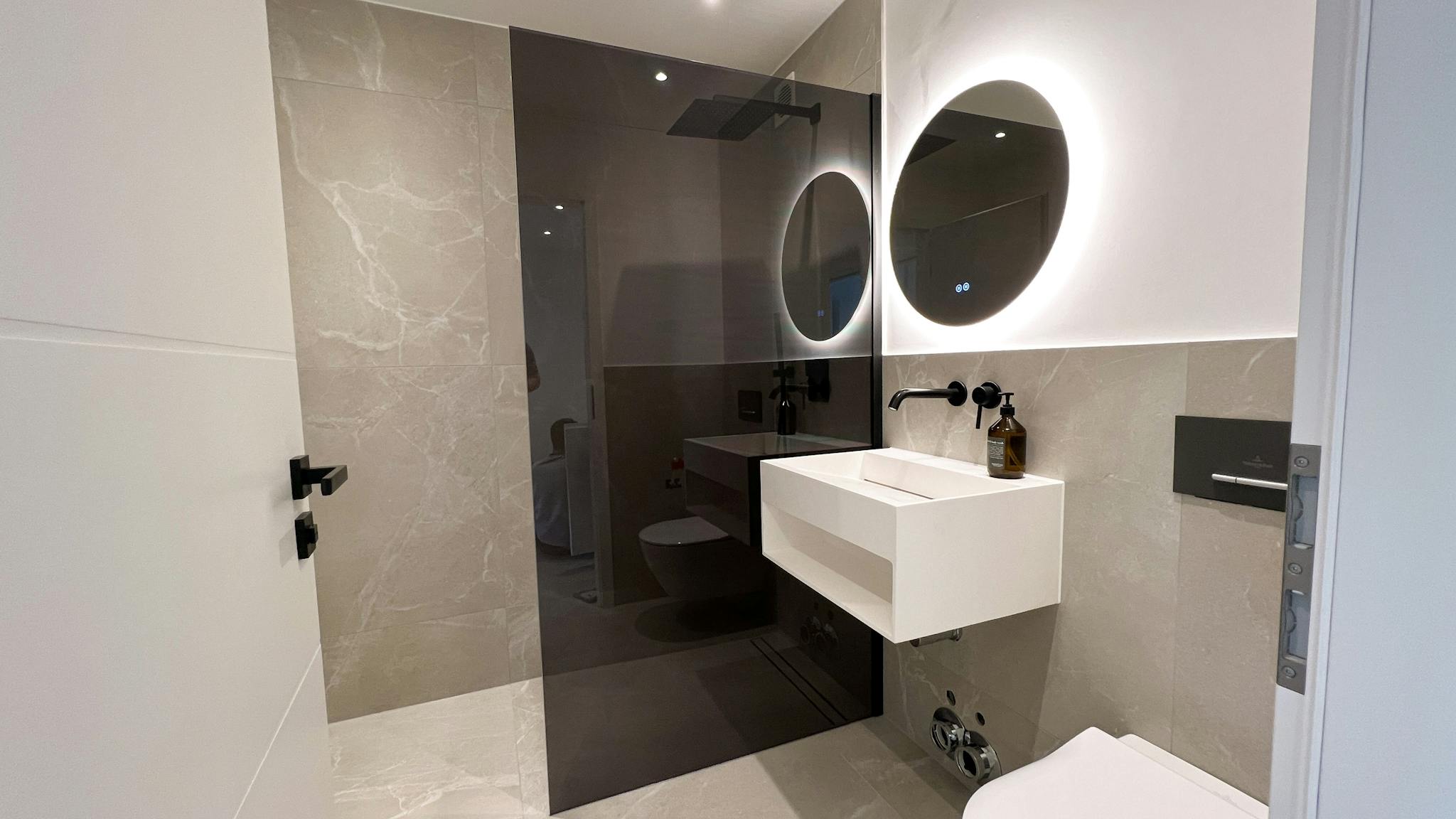 - modernes Badezimmer mit Dusche und Waschbecken