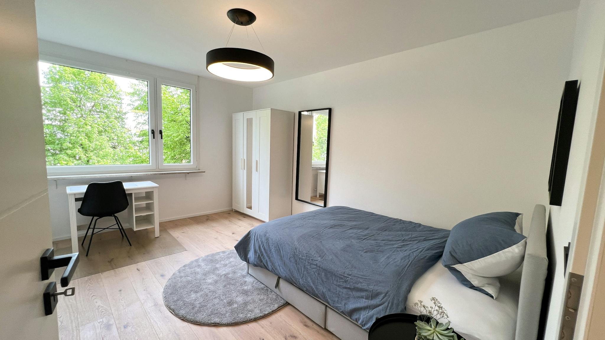 - Voll möblierte Zimmer: gemütlichem Bett, geräumigem Kleiderschrank, funktionaler Schreibtisch, bequemem Stuhl, weichem Teppich und elegantem Spiegel (siehe Bilder)