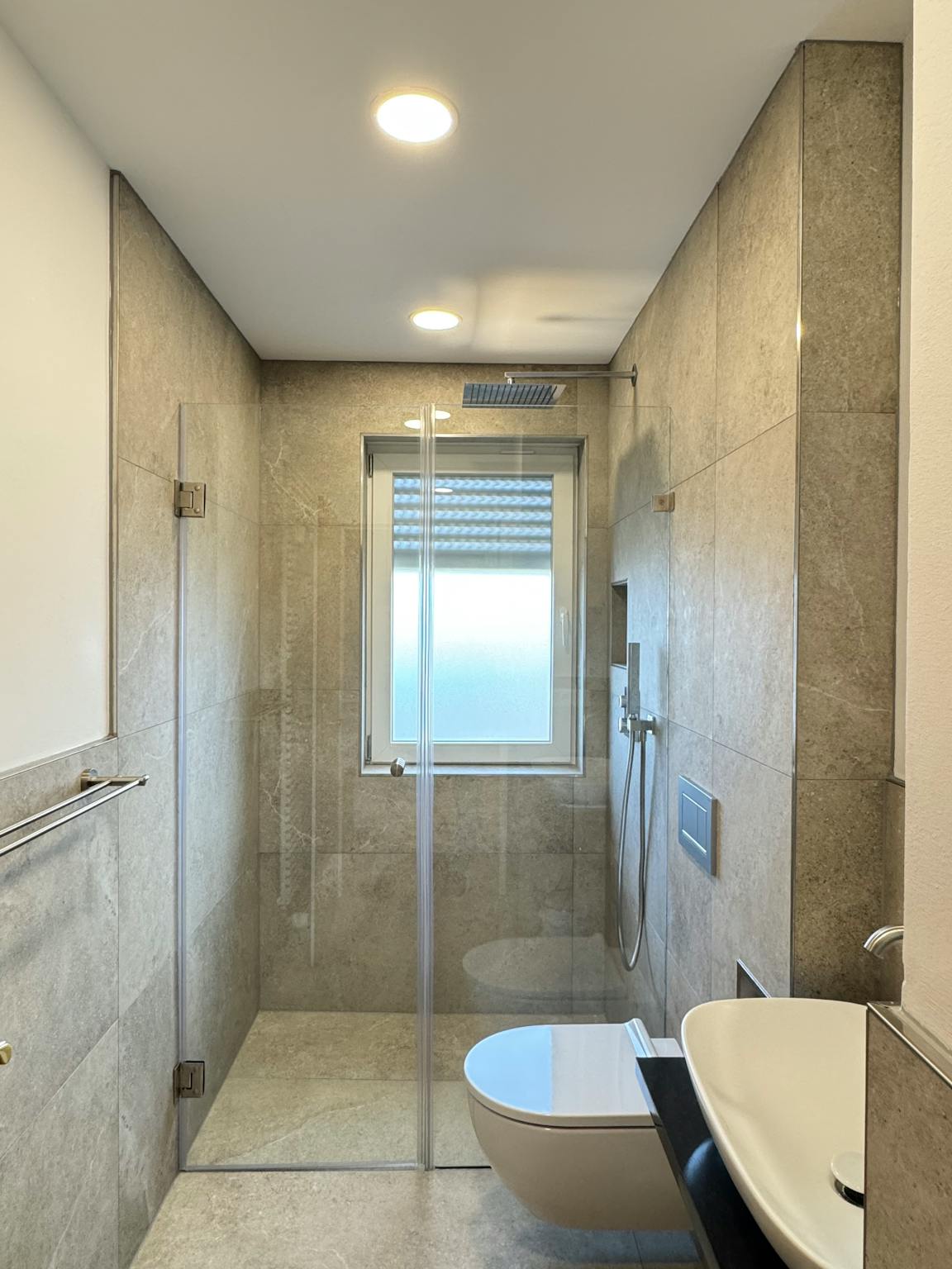 • 1 modernes Badezimmer mit Dusche und Waschmaschine