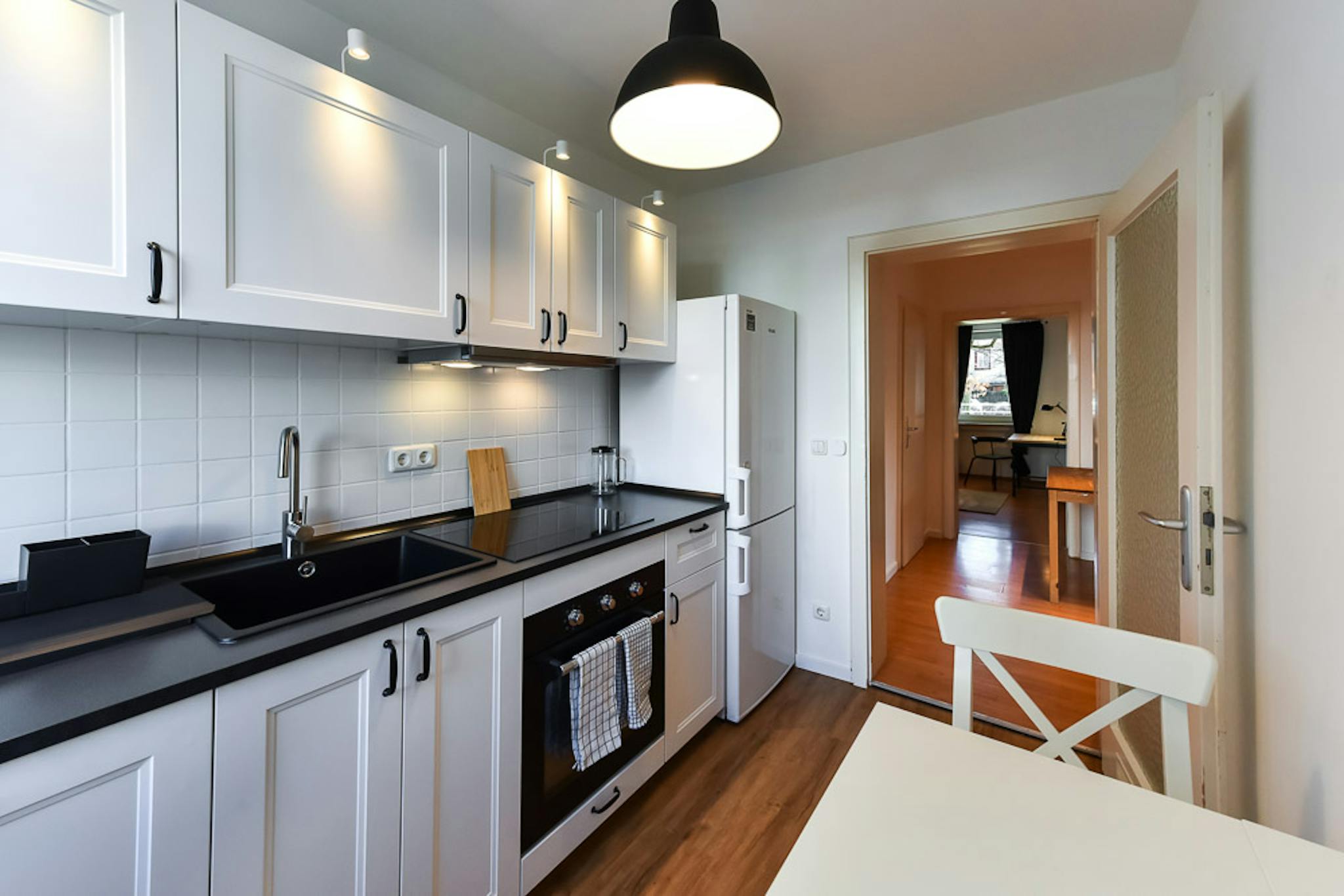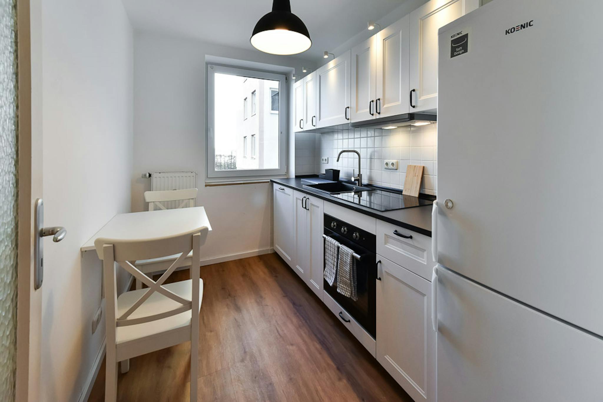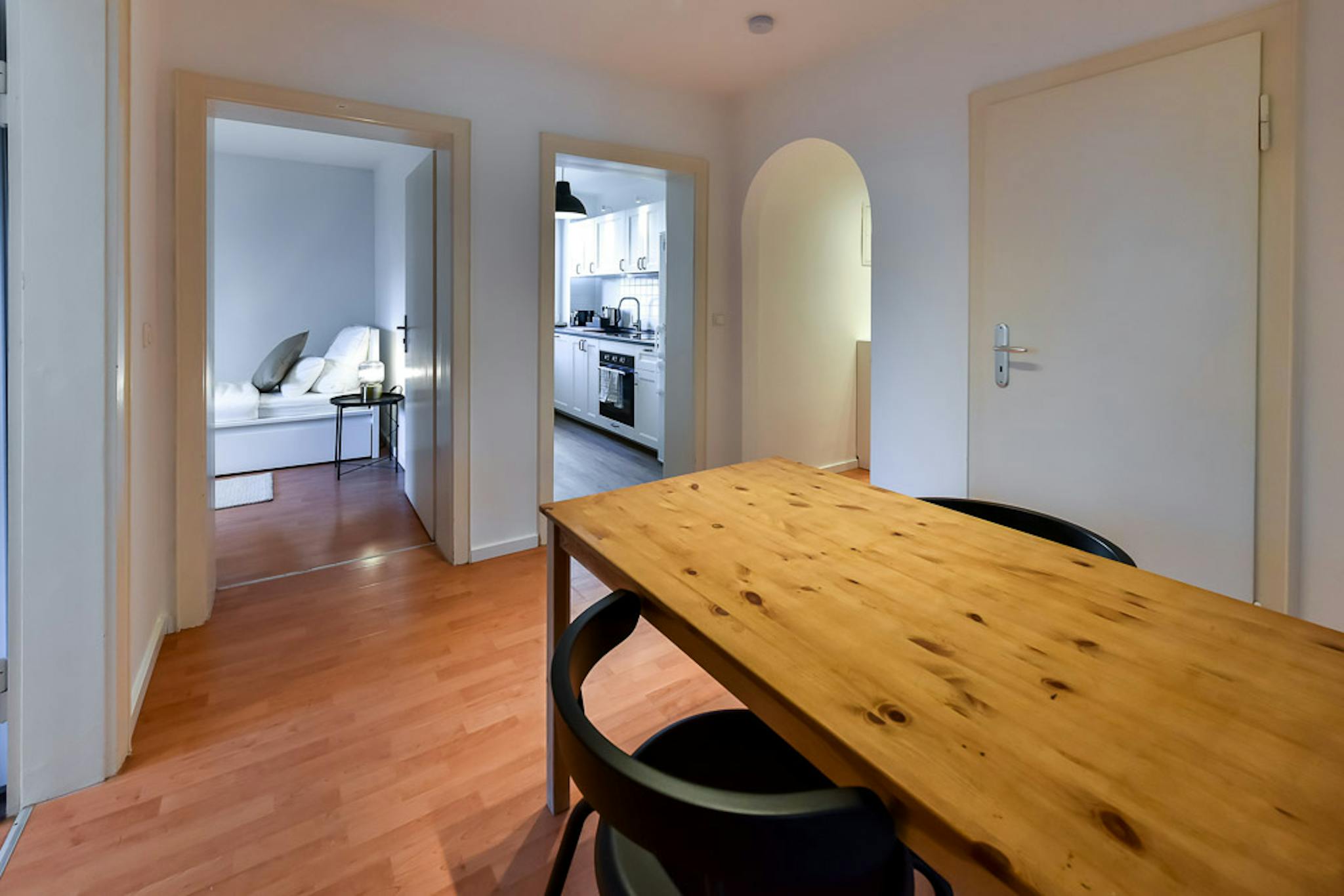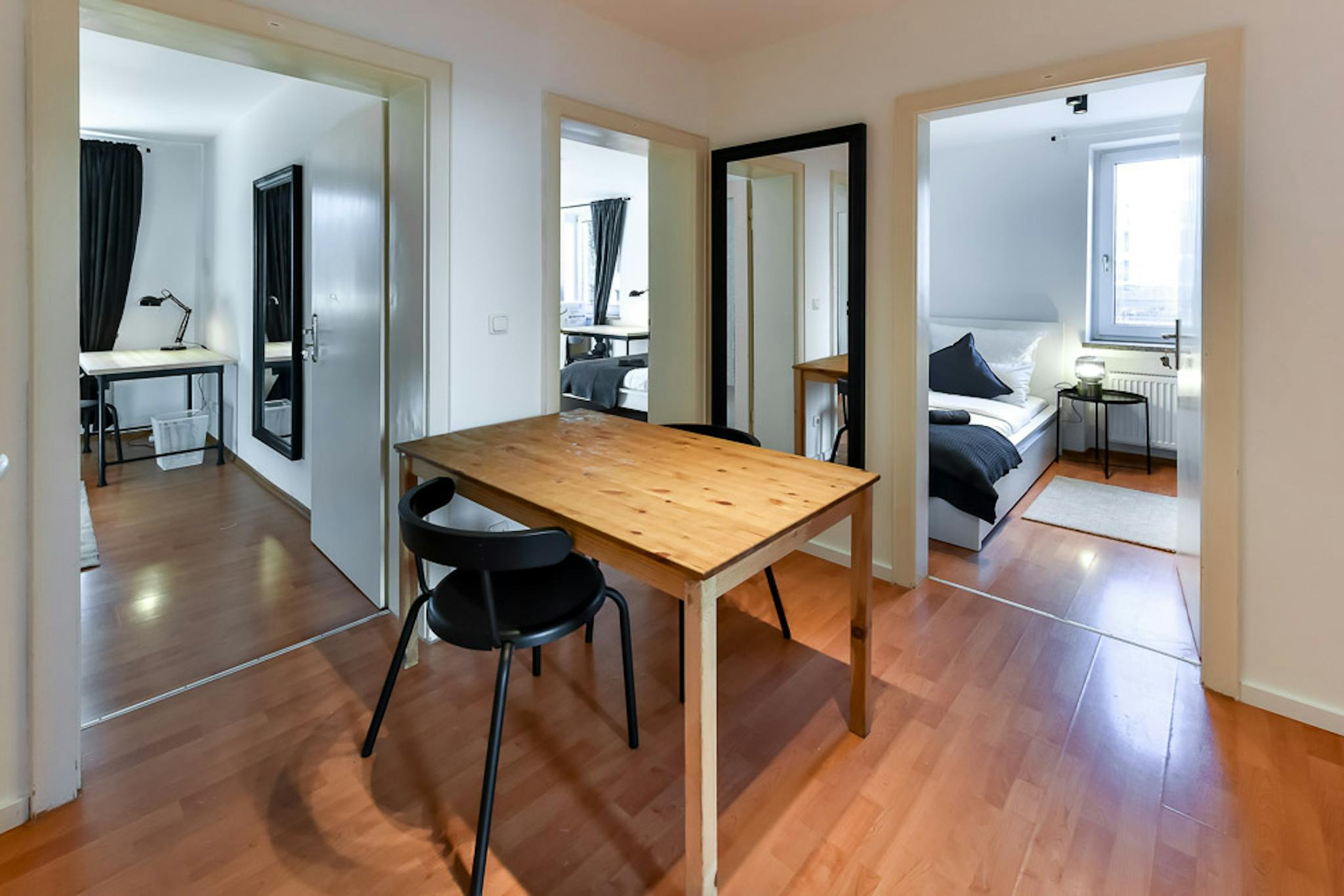Our flats fulfil all your daily living requirements. Every flat comes readily equipped with a kitchen, including refrigerator, cooking equipment and dishes. Flats also include a washing machine and Wi-Fi Internet. Each room is fully furnished and offers a comfortable bed with fresh linen and a workspace. The area provides you with several shopping opportunities and excellent connections to public transport.