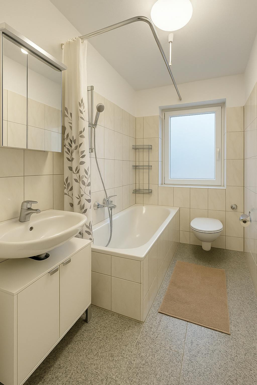 The apartment is located in a quiet, green neighborhood in Milbertshofen, perfect for relaxing after a busy day.