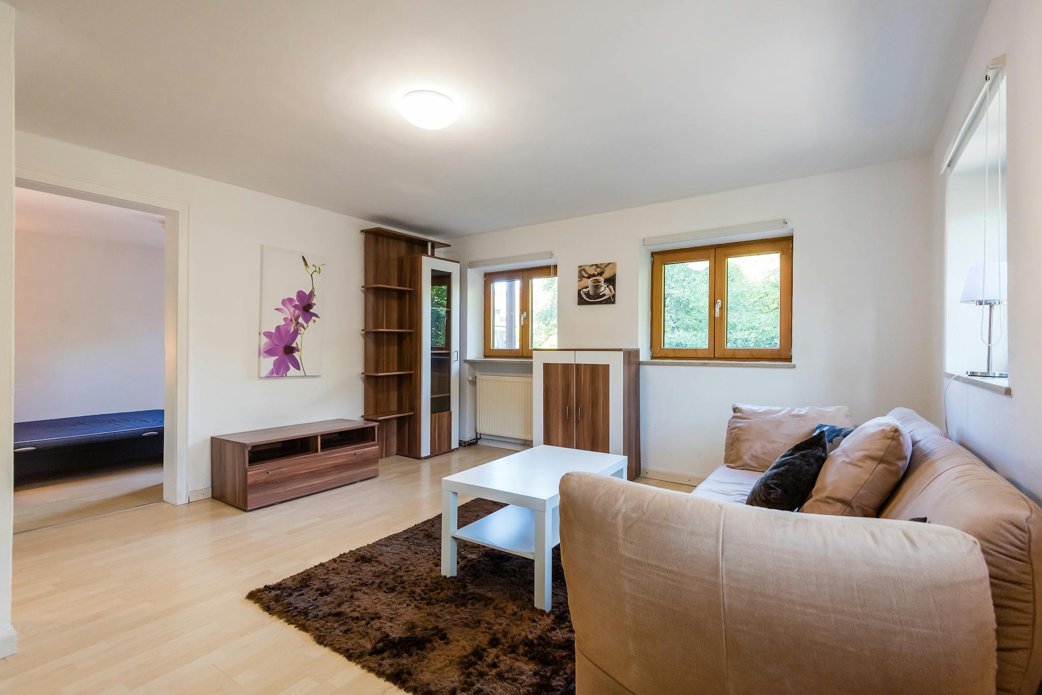 Bus lines 134, 63 and N41 run nearby and take you directly to the city center as well as to the subway and S-Bahn. Within walking distance you can reach supermarkets, cafes and bakeries, restaurants, beer gardens, bars, gyms, fashion shops and various doctors. The nearby Sollner Weiher is ideal for walks, and Forstenrieder Park is perfect for outdoor activities.