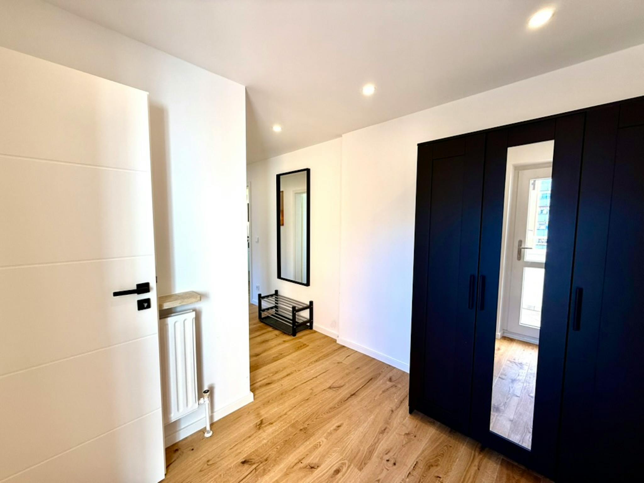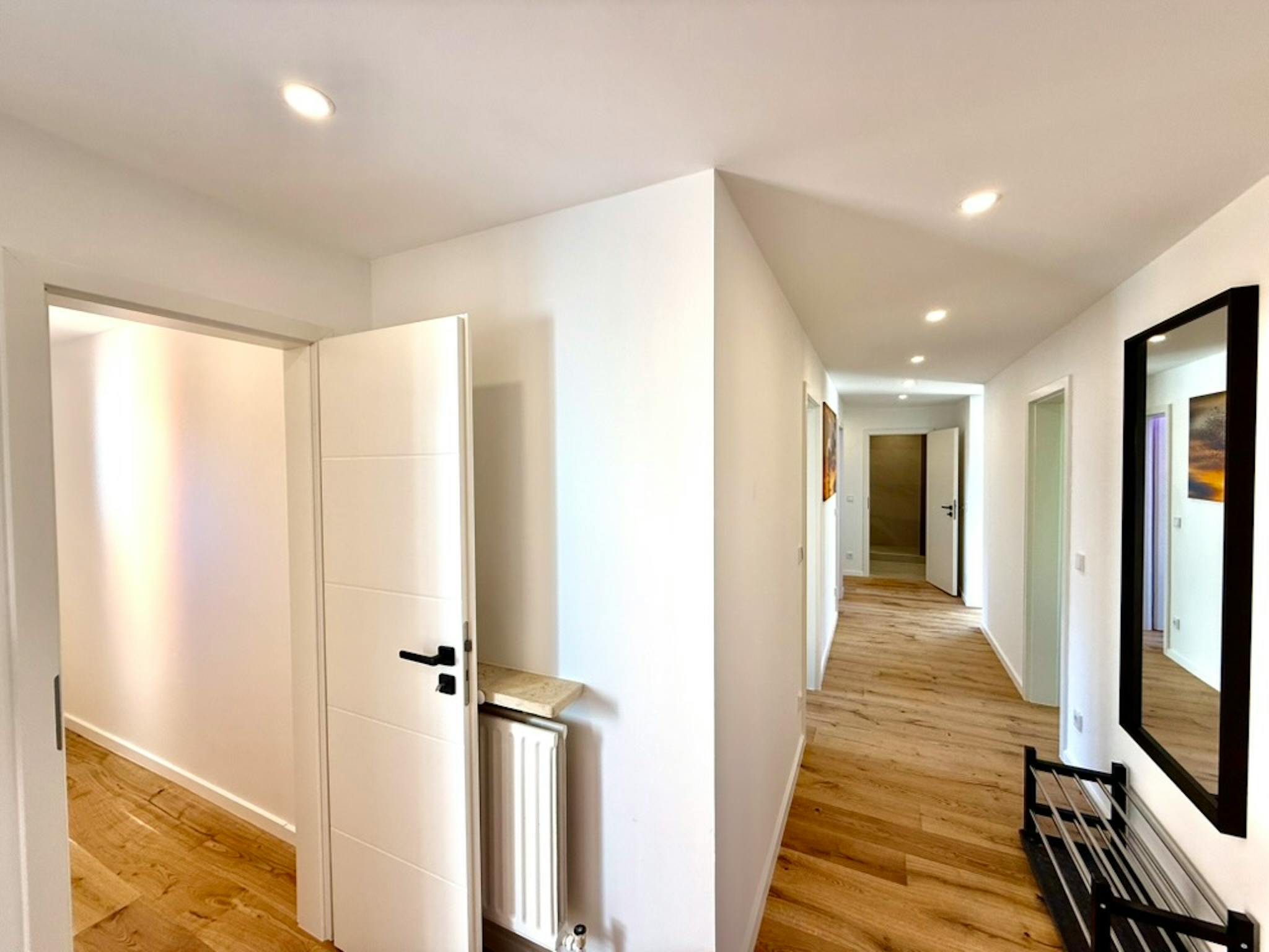 The generous hallway gives a very inviting impression and provides access to all rooms of the large apartment. The apartment also has a newly furnished bathroom, with a washbasin and LED mirror, a towel radiator, a shower, and a toilet.