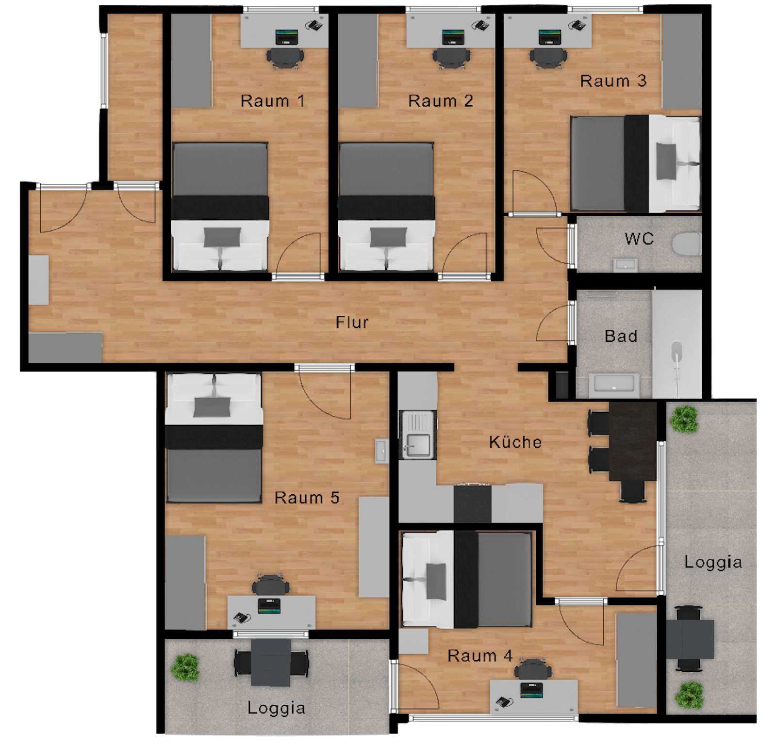The rent already includes all utility costs for your room and all common areas (no hidden costs!).