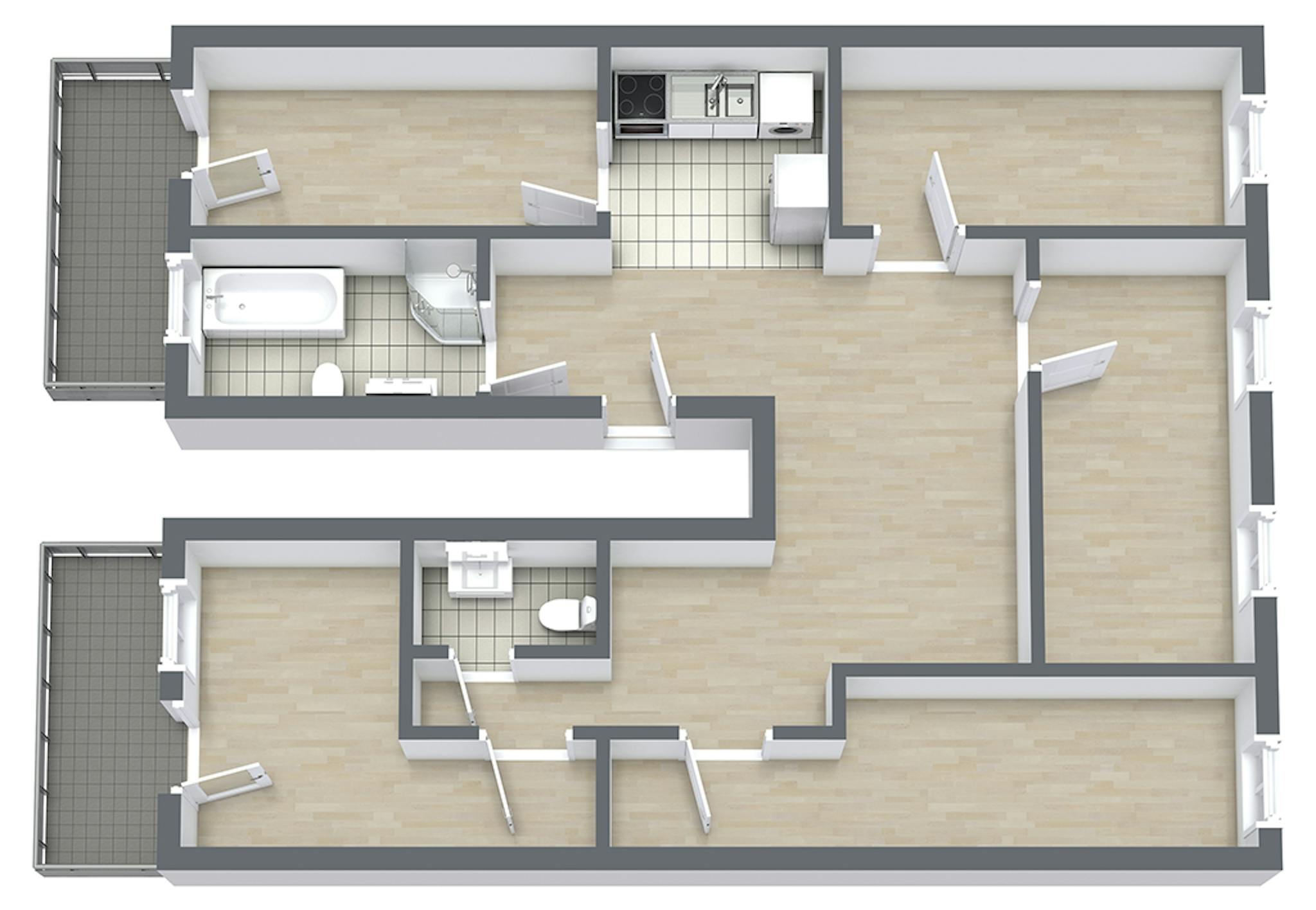 Our flats fulfil all your daily living requirements. Every flat comes readily equipped with a kitchen, including refrigerator, cooking equipment and dishes. Flats also include a washing machine and Wi-Fi Internet. Each room is fully furnished and offers a comfortable bed with fresh linen and a workspace. The area provides you with several shopping opportunities and excellent connections to public transport.