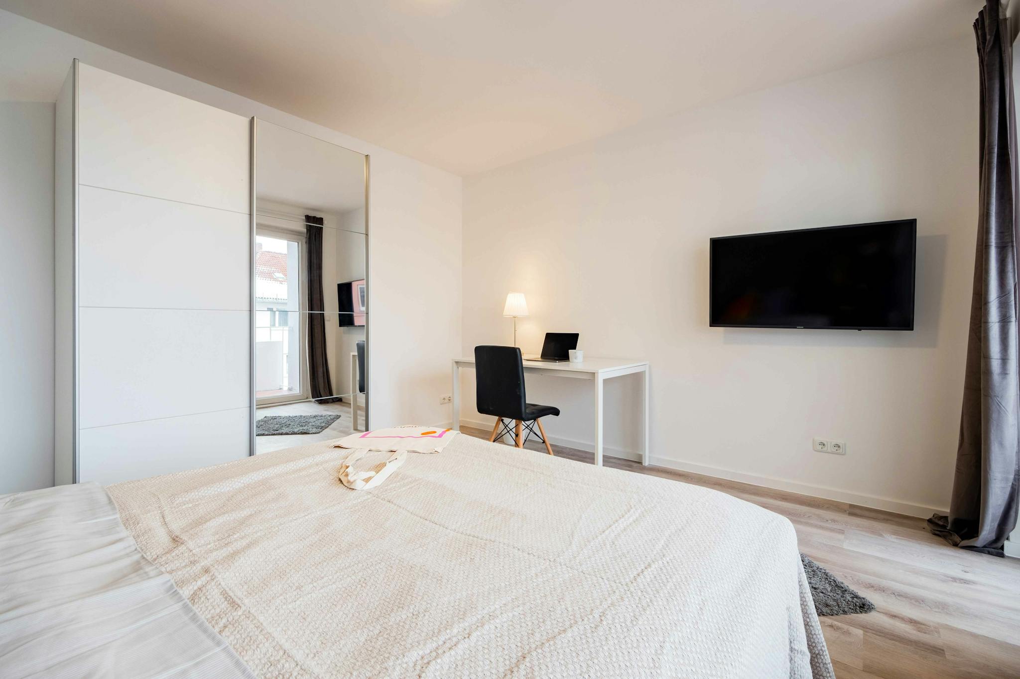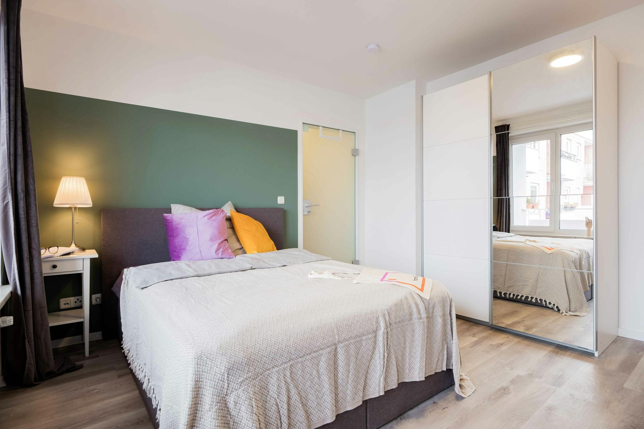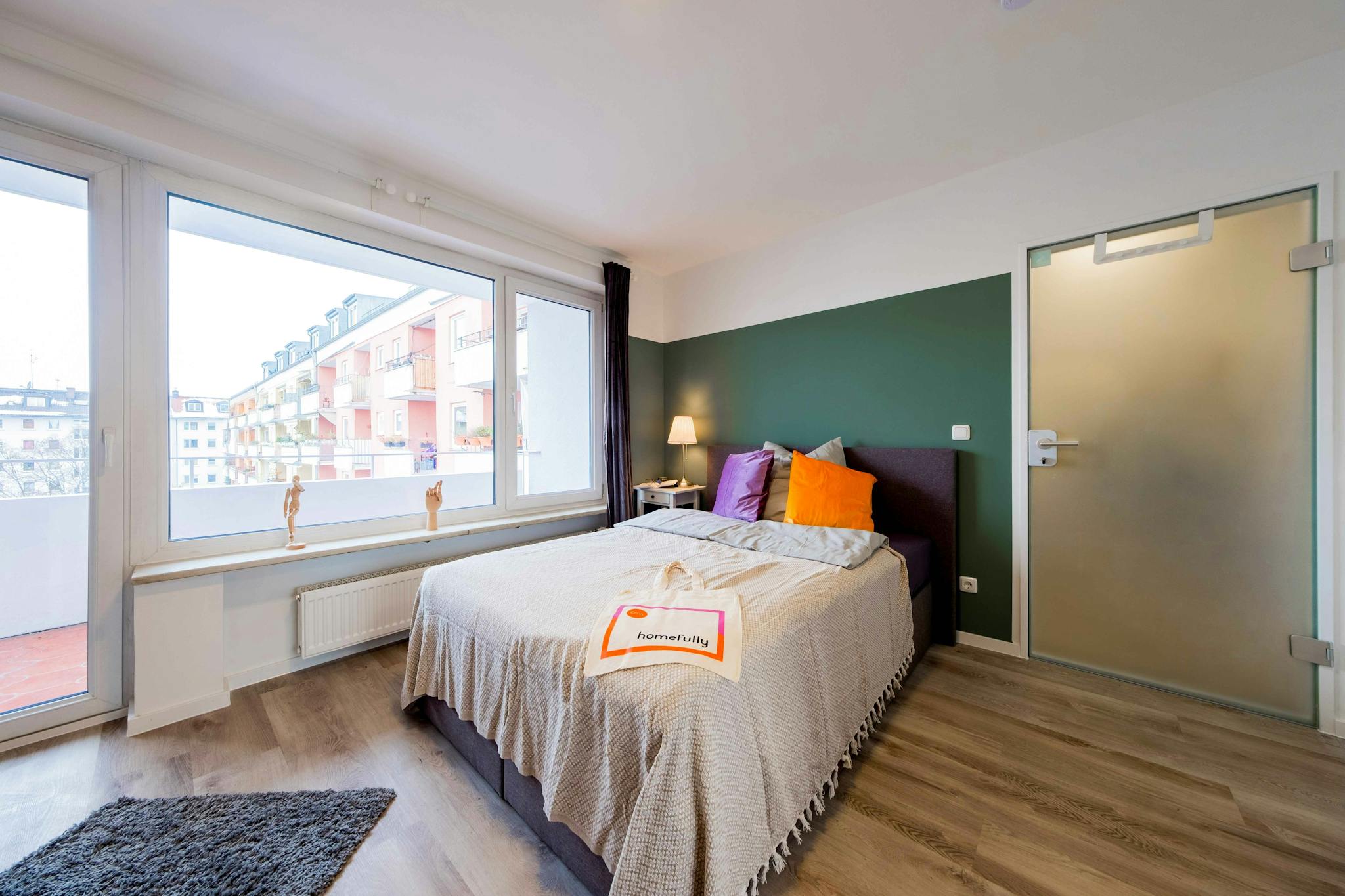 Bright and colorful, this private bedroom in Munich has everything you need for a comfortable daily life. Your private space includes a comfy bed, a desk to work or study from home, and a spacious wardrobe.