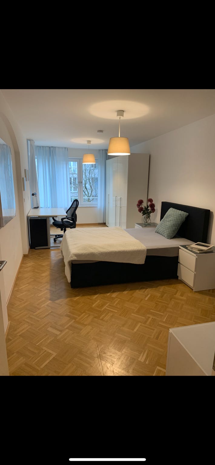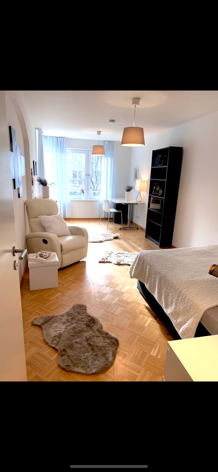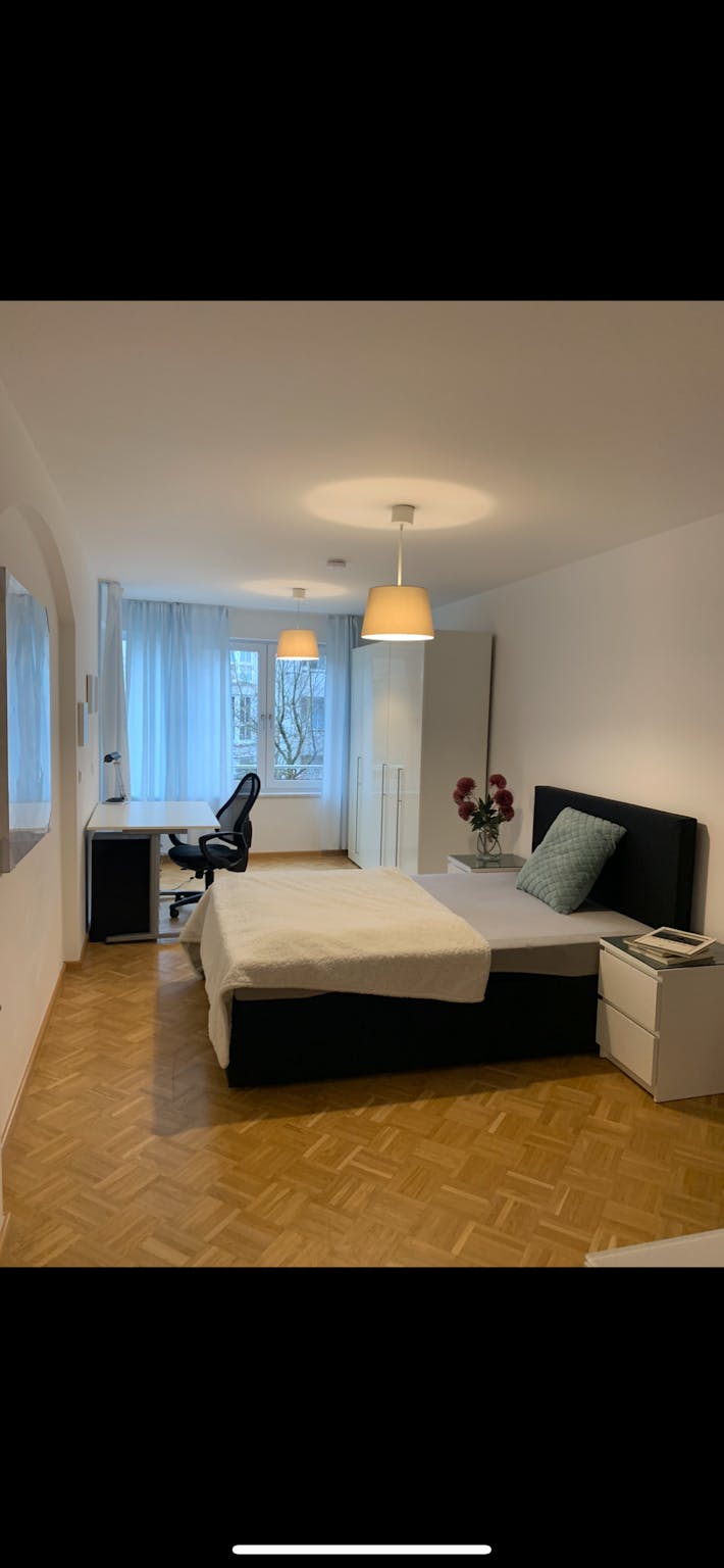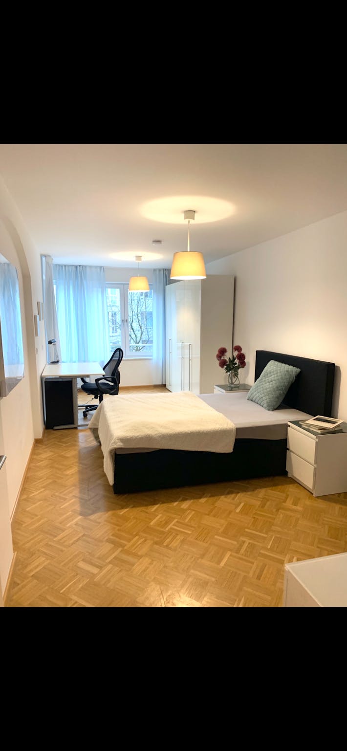 This charming private room on Schäufeleinstraße in Munich spans 14 m2 and is designed to offer both comfort and functionality. The room is furnished with a cozy bed, a spacious wardrobe for storage, and a desk suitable for studying or working. The apartment is a generous 90 m2, ensuring ample space for shared living. Modern amenities include central heating and high-speed internet, providing a pleasant and connected living experience throughout the year.
