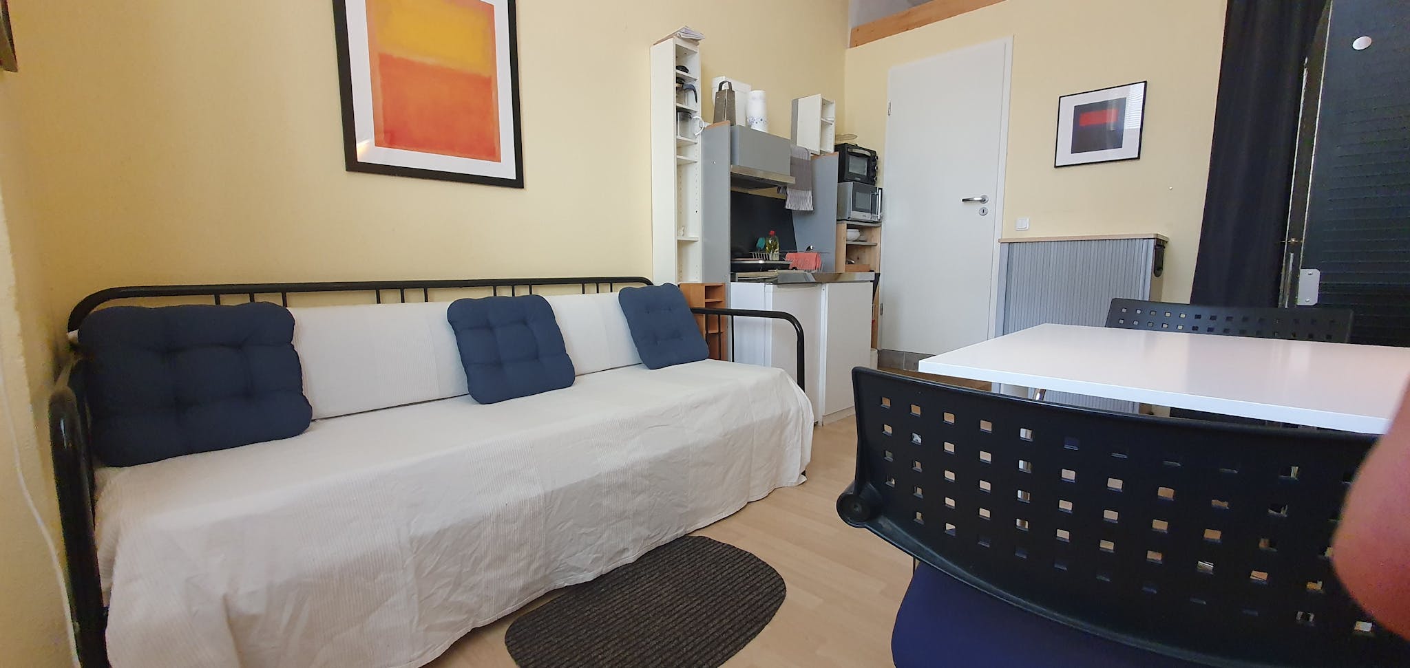A one- room independent studio in Munich, Schwabing area on your own. It is a former shop with own entrance from outside. The studio is furnished, bed , a kitchenette (small kitchen) and own bathroom with toilet and shower. A self service laundry with dryers is arround the corner. Internet is available and included.
