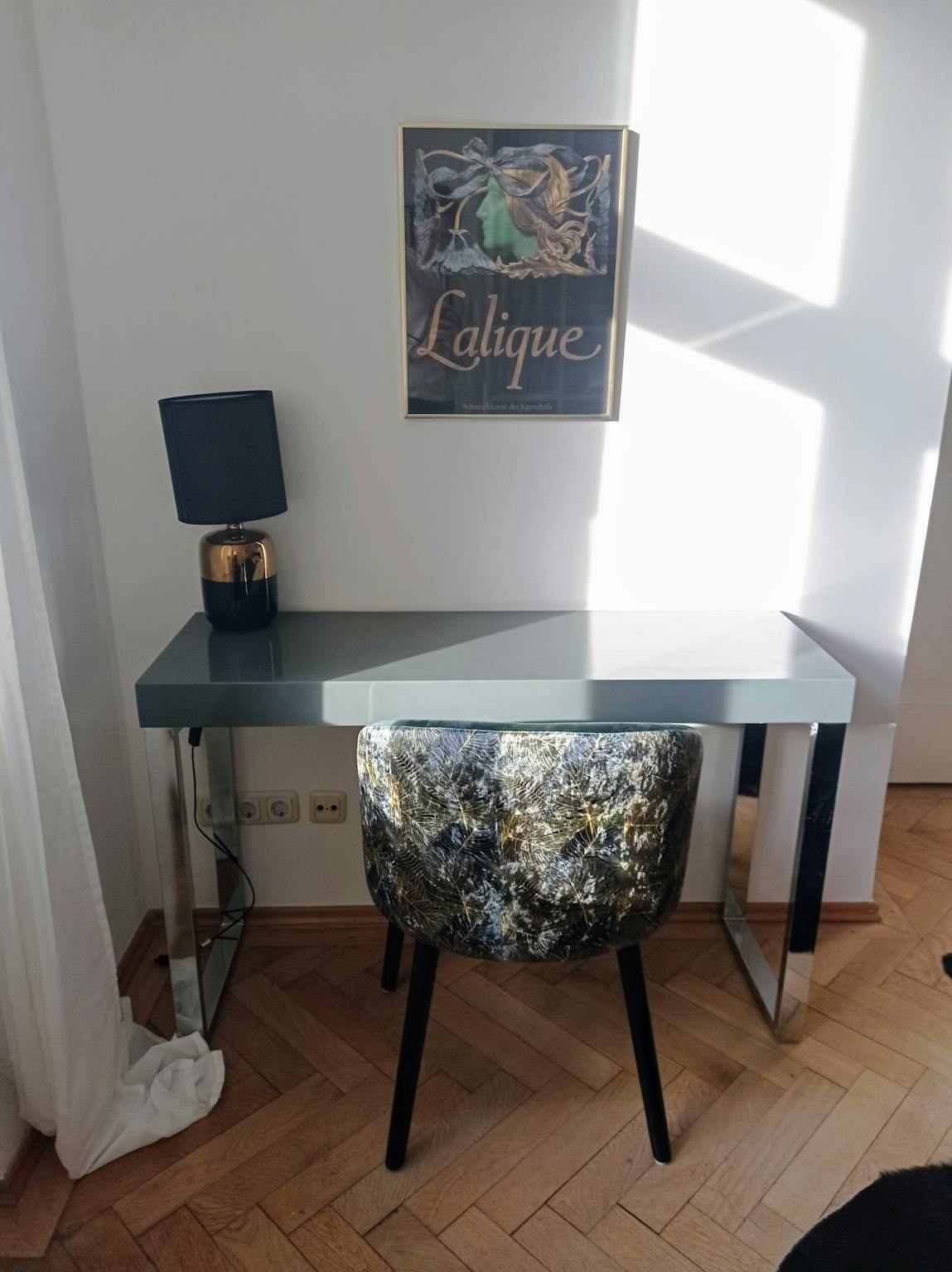 * small workspace with velvet chair (or ergonomic chair if wanted)