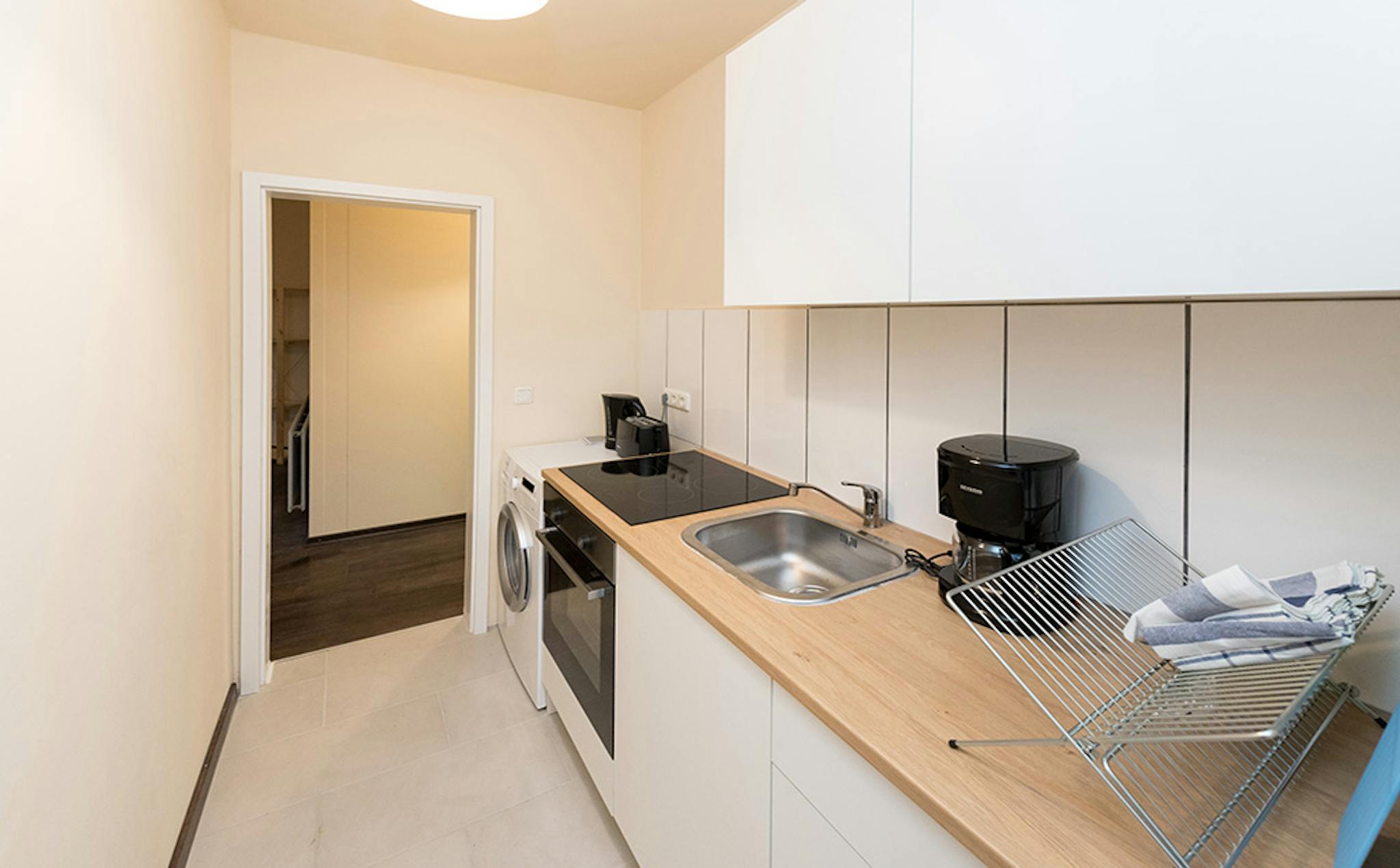 Our flats fulfil all your daily living requirements. Every flat comes readily equipped with a kitchen, including refrigerator, cooking equipment and dishes. Flats also include a washing machine and Wi-Fi Internet. Each room is fully furnished and offers a comfortable bed with fresh linen and a workspace. The area provides you with several shopping opportunities and excellent connections to public transport.