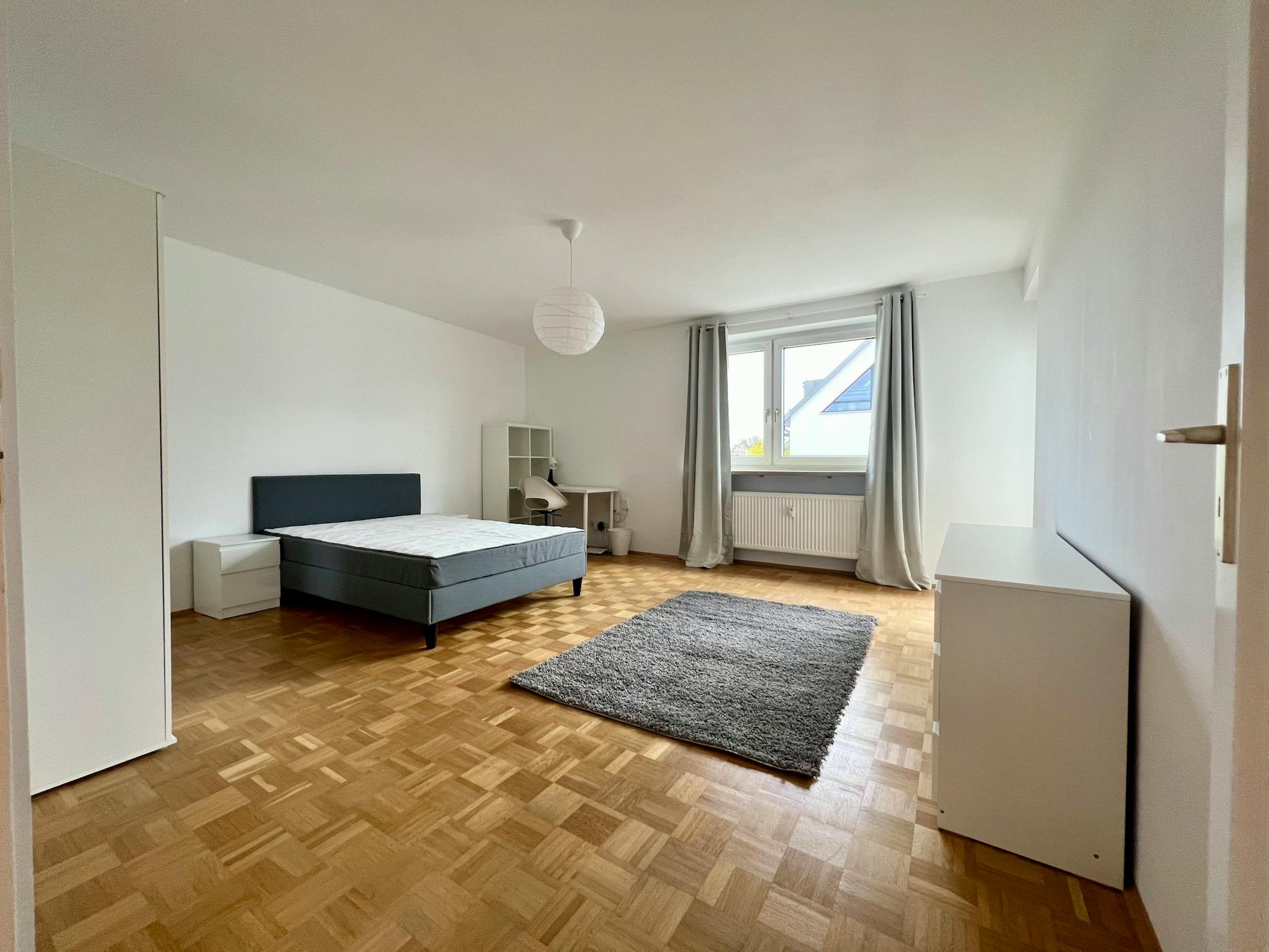 The flat impresses with its quiet yet well-connected residential area. A beautiful park, the U2 underground station and all shops for daily needs are right on the doorstep. You can reach the university and Munich Central Station in under 10 minutes. BMW is also nearby.