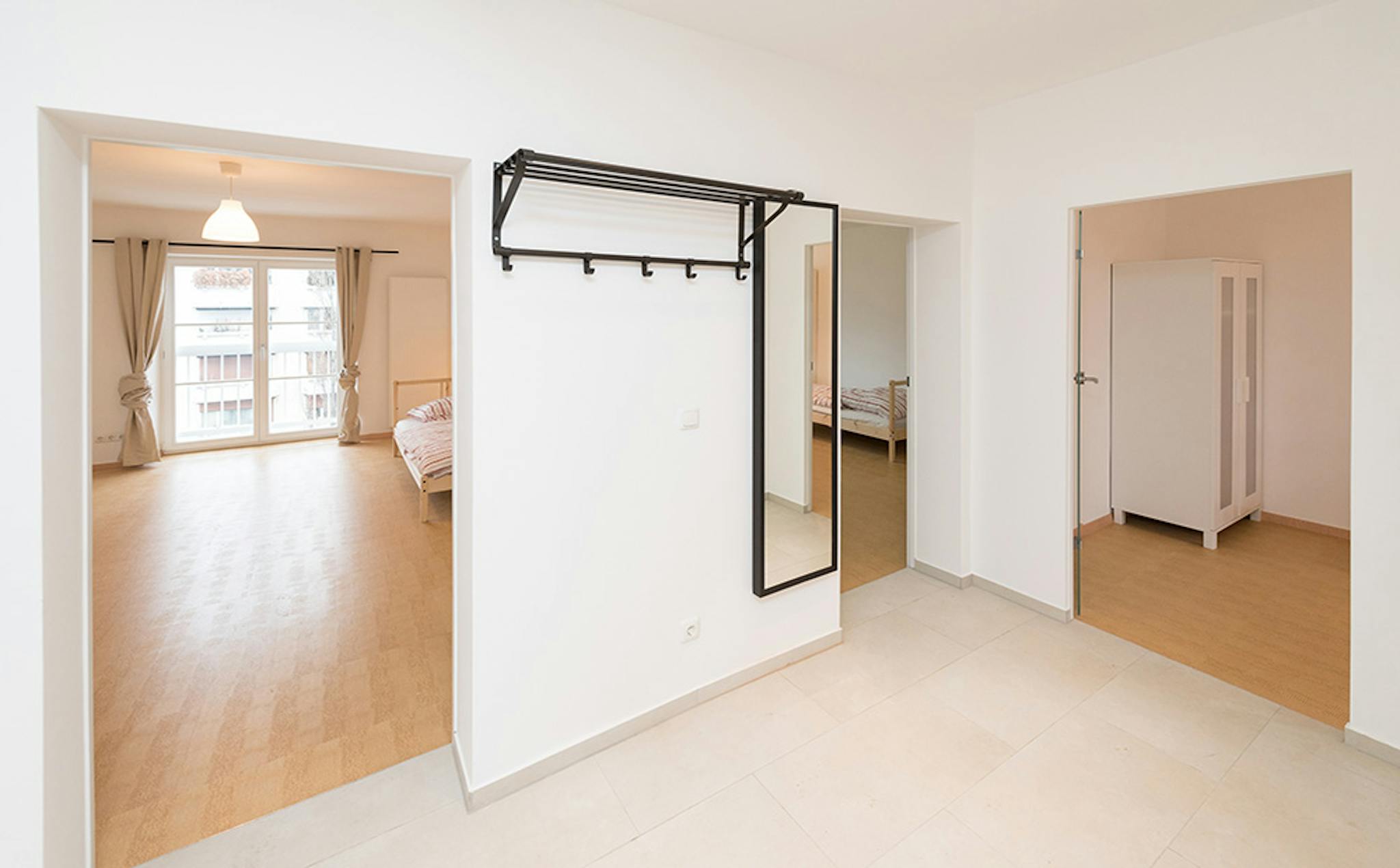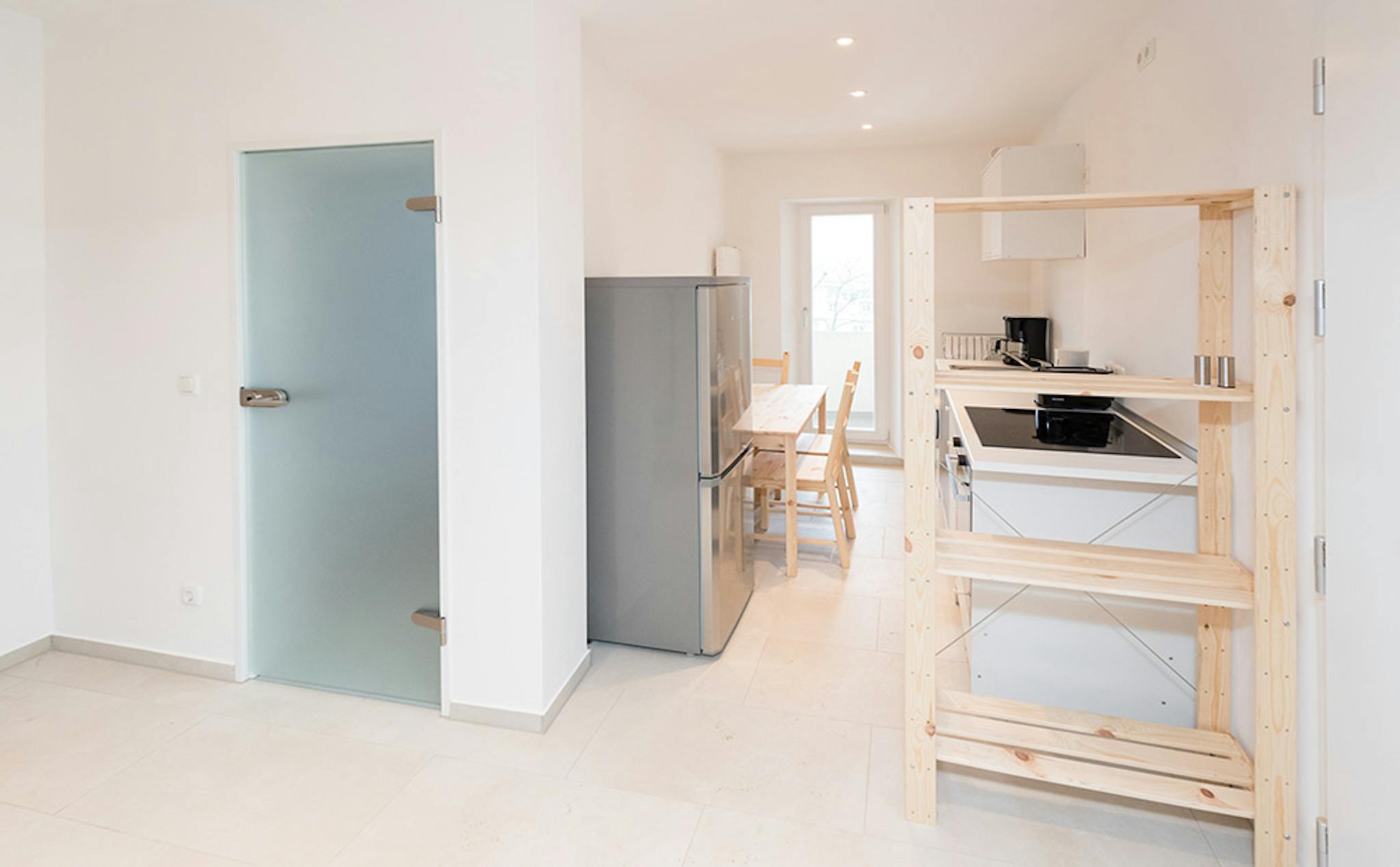 Our flats fulfil all your daily living requirements. Every flat comes readily equipped with a kitchen, including refrigerator, cooking equipment and dishes. Flats also include a washing machine and Wi-Fi Internet. Each room is fully furnished and offers a comfortable bed with fresh linen and a workspace. The area provides you with several shopping opportunities and excellent connections to public transport.