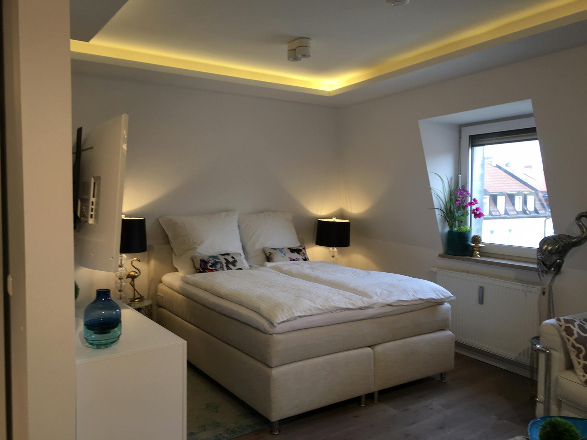Non-SmokingNot allowedTolles neu möbliertes und kernsarniertes 1-Zimmer-Apartment in München Sendling der Luxusklasse, im Dachgeschoß mit Lift bis zum 4 Stock + eine Stiege zum Dachgeschoß rechte Einheit. Toller Blick über die Dächer Münchens. Kombiniertes Wohn-/Schlafzimmer, mit neuem Boxspringbett mit Taschenfederkern, Gel-Topper 160 x 200 cm für einen fantastischen Schlaf, Esstisch, 2 Stühlen, Kleiderschrank, Wohnzimmereck. Modernes Luxus Bad mit Regenschauerdusche. Die integrierten Blue-Tooth Lautsprecher im Bad können bequem über das Smartphone angesteuert werden. Praktische neue großzügige Küche mit allen wichtigen Geräten wie Ofen inkl. Mikrowelle, Cerankochfeld, Geschirrspülmaschine, und einer integrierten Waschmaschine. Ausgestattet mit Echtholz Eichendielenboden. Der große Flachbildschirm Smart TV gibt die Möglichkeit seinen Netflix account oder andere TV Dienste zu nutzen. Nur Langfrist Miete, mindestens 6 Monate (+volle Monate). Es ist NICHT für eine Familie geeignet. Inklusive kostenlosem W-LAN.