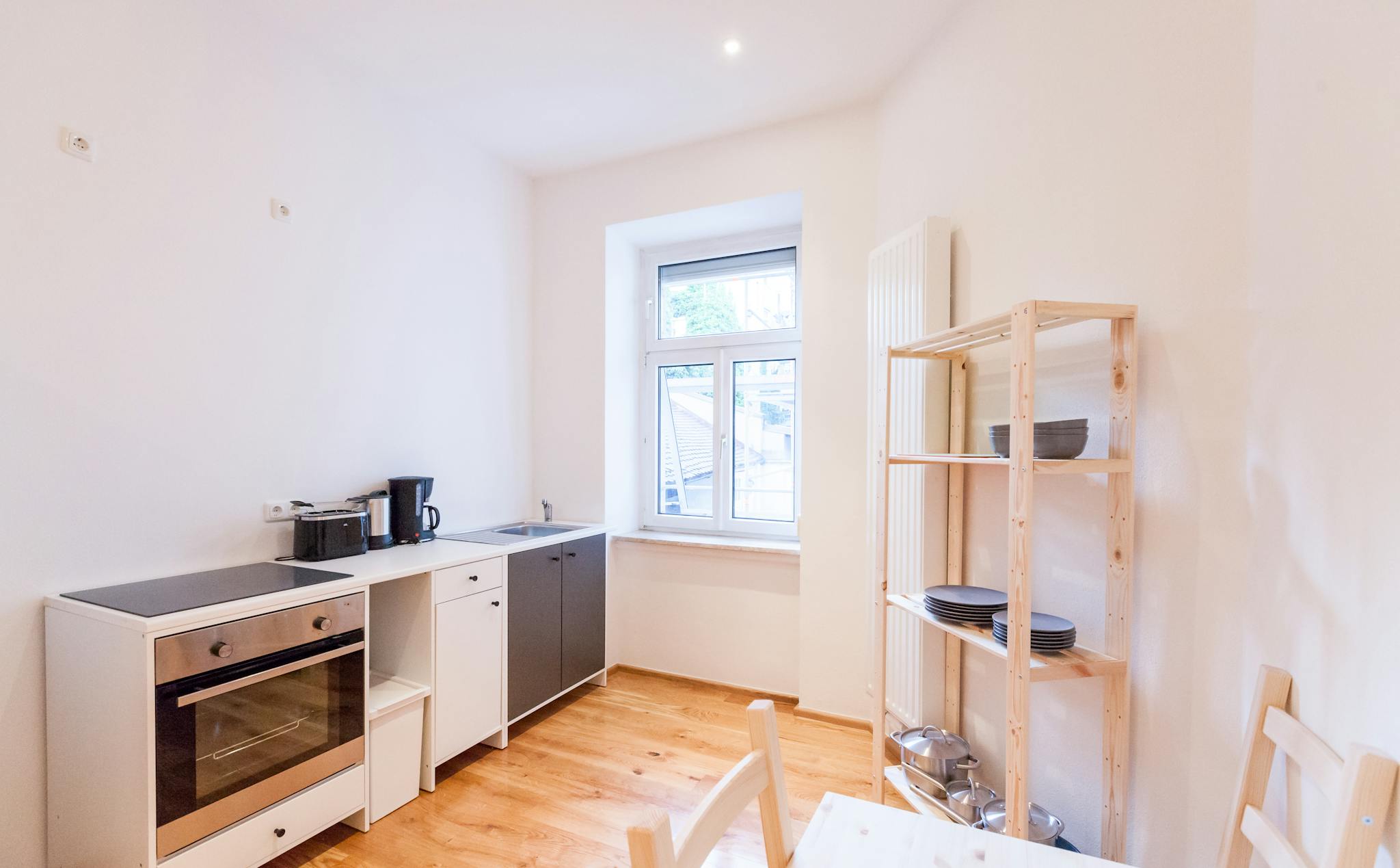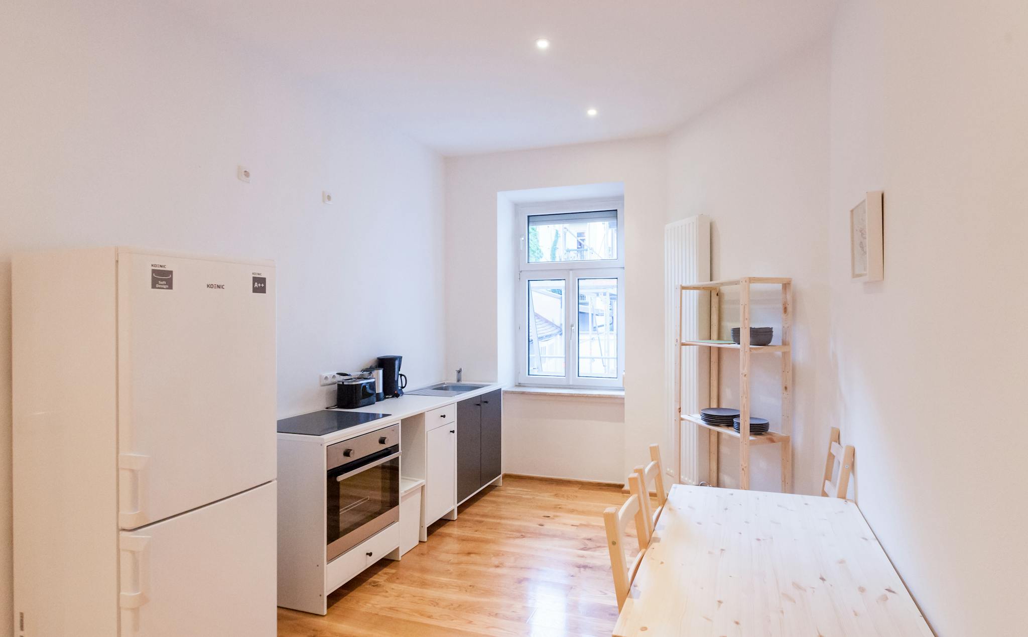 Our flats fulfil all your daily living requirements. Every flat comes readily equipped with a kitchen, including refrigerator, cooking equipment and dishes. Flats also include a washing machine and Wi-Fi Internet. Each room is fully furnished and offers a comfortable bed with fresh linen and a workspace. The area provides you with several shopping opportunities and excellent connections to public transport.
