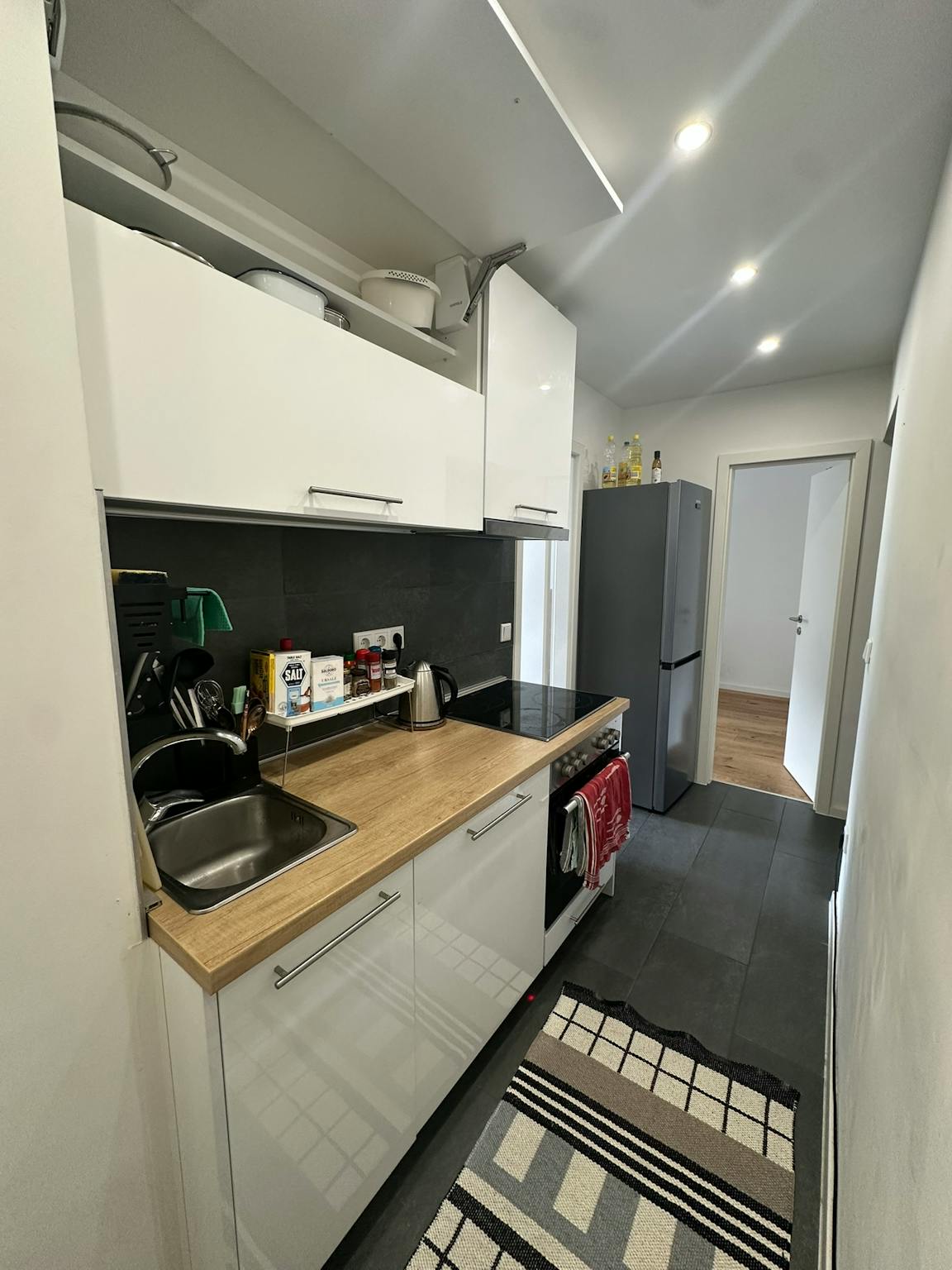 The apartment was recently renovated and shines with a modern and fresh design. It features a stylish bathroom with high-quality, contemporary tiles that create a welcoming atmosphere. The built-in kitchen is fully equipped with everything needed for cooking and dining: a refrigerator, freezer, stovetop, oven, sink, dishwasher, and washing machine. Many of our shared apartments even include washing machines with an integrated dryer function, adding extra convenience. There is also a comfortable dining area with seating for shared meals and socializing. The high-quality flooring throughout the apartment enhances the modern ambiance and provides a comfortable living environment. Wi-Fi is, of course, available – either provided by the landlord and included in the monthly utility costs or organized among the flatmates, with minimal shared costs. This combination of comfort, style, and modern amenities makes living in this apartment particularly enjoyable and ensures a smooth daily routine.