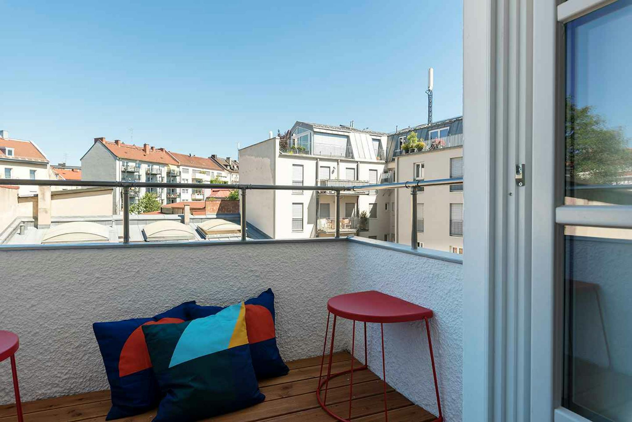 Live just a few steps from the Theresienwiese, where the all-known Oktoberfest takes place. You can also find a lot of shops, bars and restaurants along the nearby Lindwurmstraße. The apartment offers a nice atmosphere, from the traditionally held stairway up to the bright rooms and the big community space.