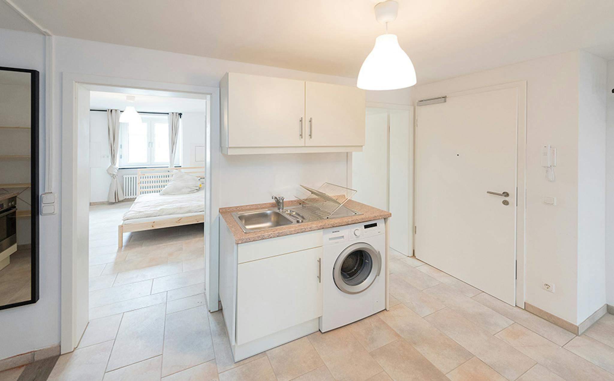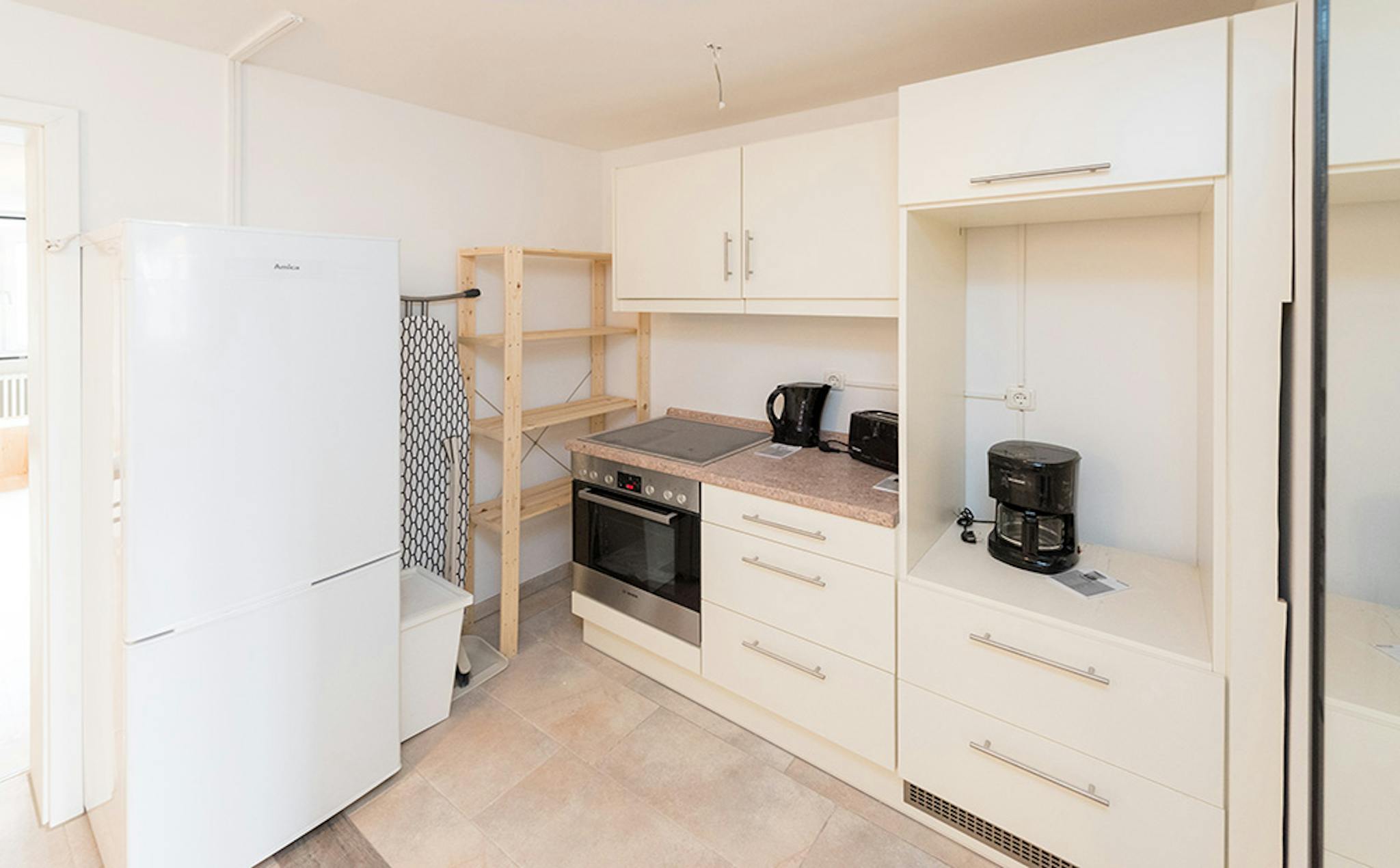 Our flats fulfil all your daily living requirements. Every flat comes readily equipped with a kitchen, including refrigerator, cooking equipment and dishes. Flats also include a washing machine and Wi-Fi Internet. Each room is fully furnished and offers a comfortable bed with fresh linen and a workspace. The area provides you with several shopping opportunities and excellent connections to public transport.