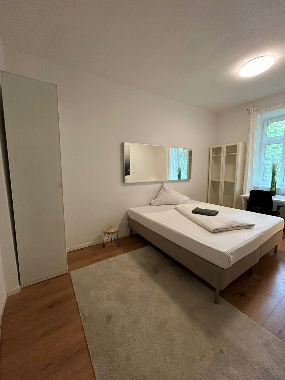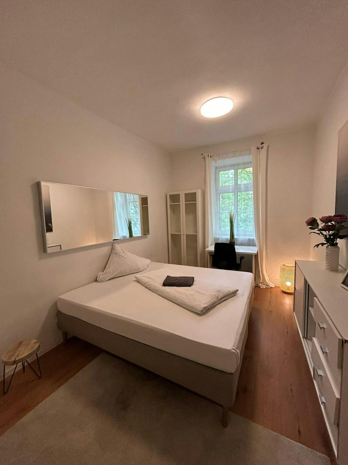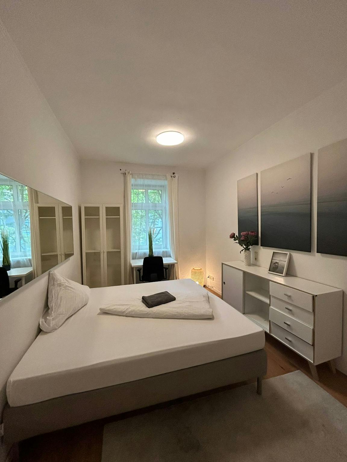 This inviting private room on Fraunhoferstraße in Munich offers a comfortable 14 m2 of space. It features a cozy bed, a large wardrobe, and a desk, providing a practical setup for both relaxation and work. The apartment itself is 95 m2 and is shared with friendly housemates. The room benefits from central heating and high-speed WiFi, ensuring a cozy and well-connected living environment.