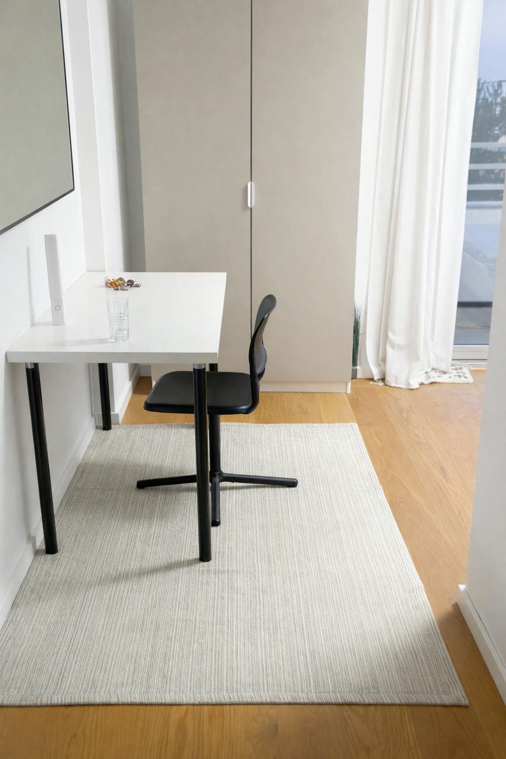 • Bright room with a clean, neutral setup