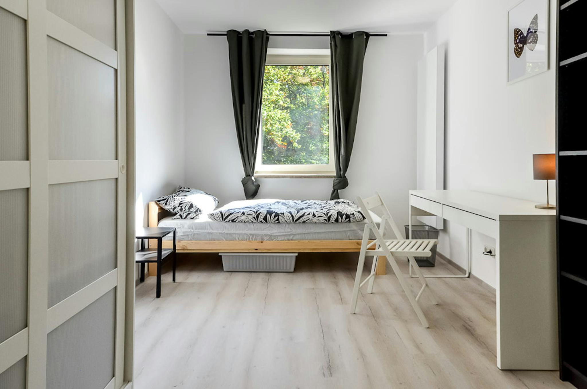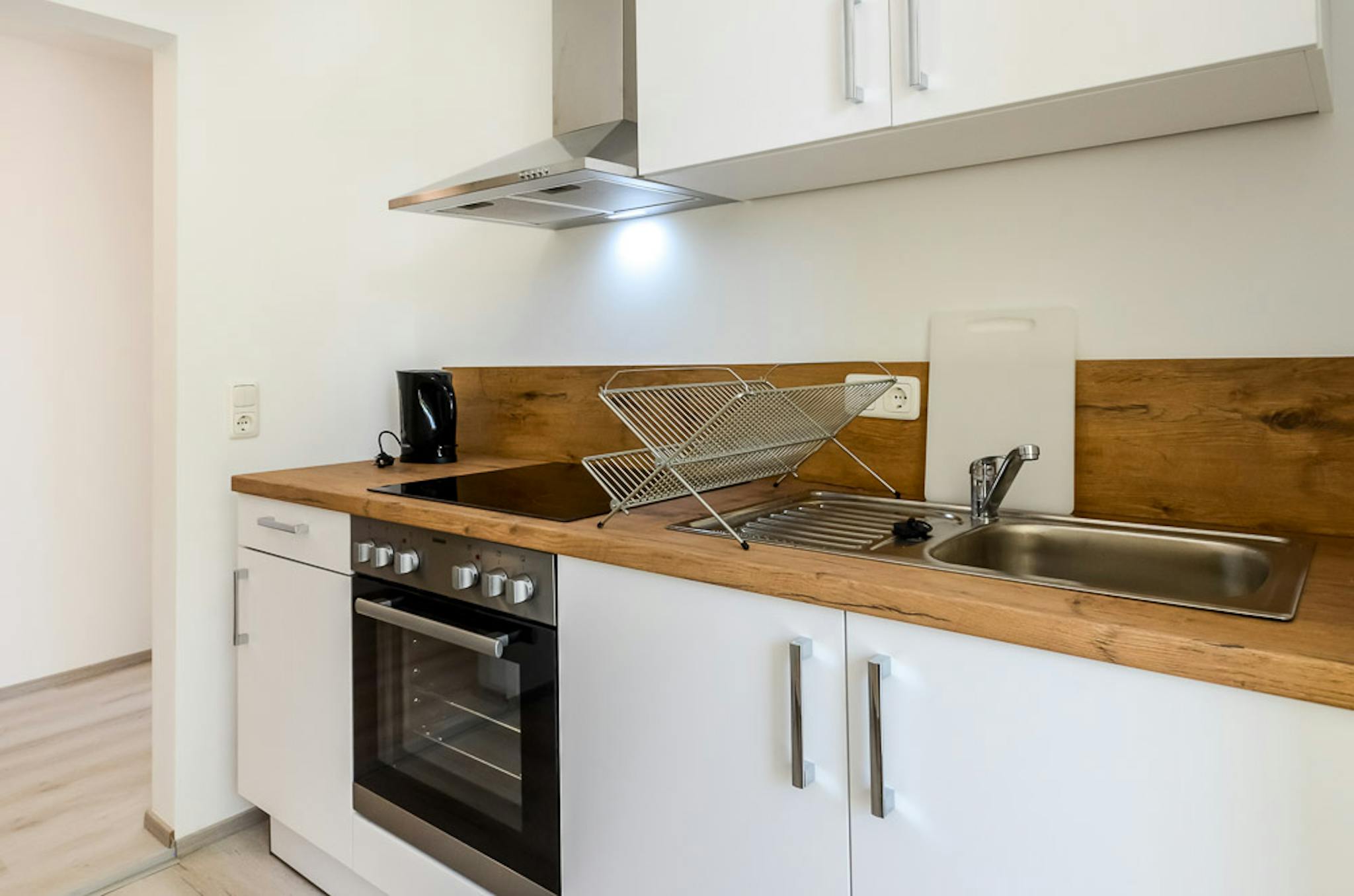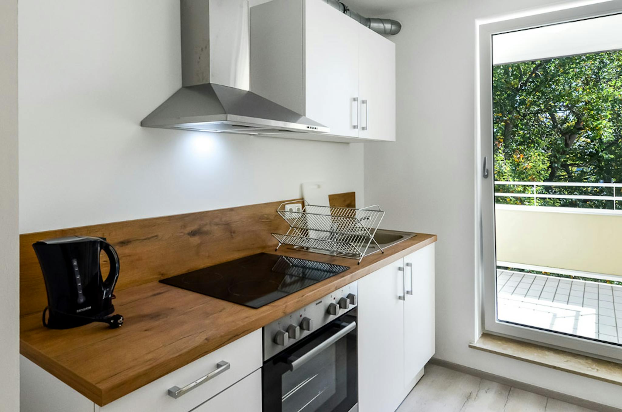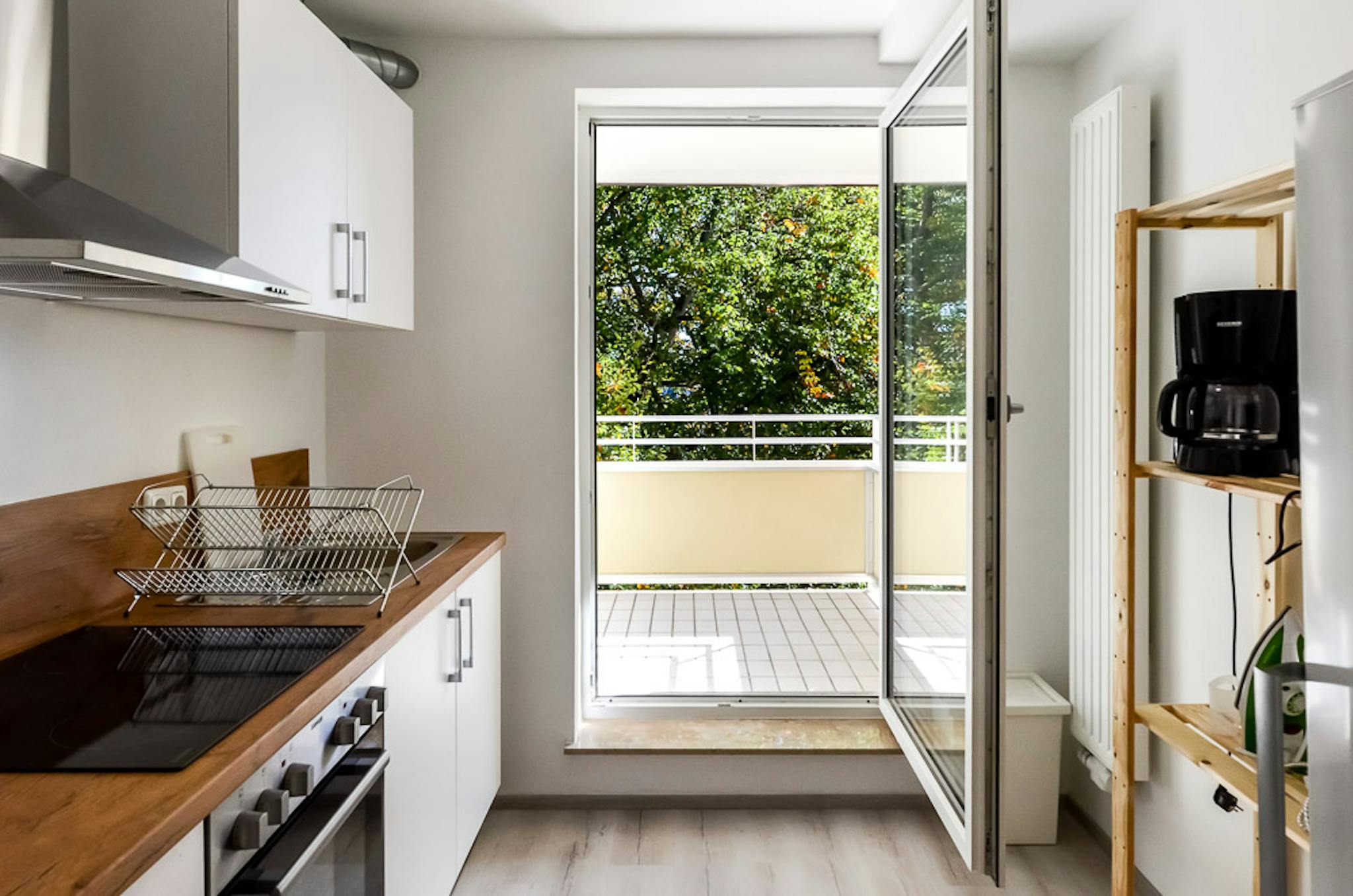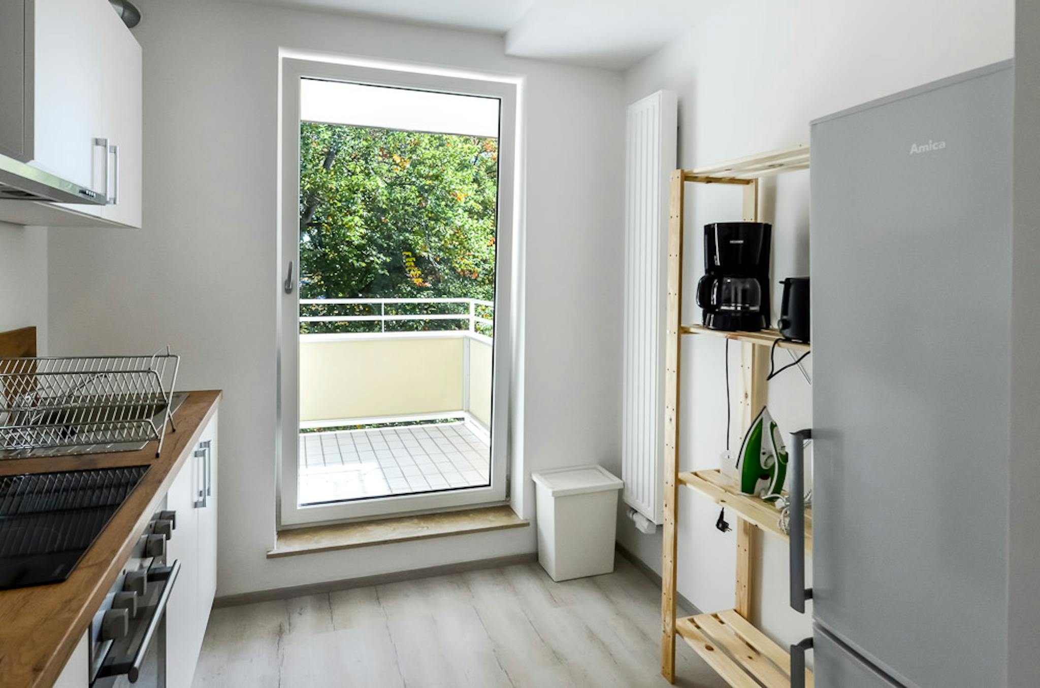 Our flats fulfil all your daily living requirements. Every flat comes readily equipped with a kitchen, including refrigerator, cooking equipment and dishes. Flats also include a washing machine and Wi-Fi Internet. Each room is fully furnished and offers a comfortable bed with fresh linen and a workspace. The area provides you with several shopping opportunities and excellent connections to public transport.