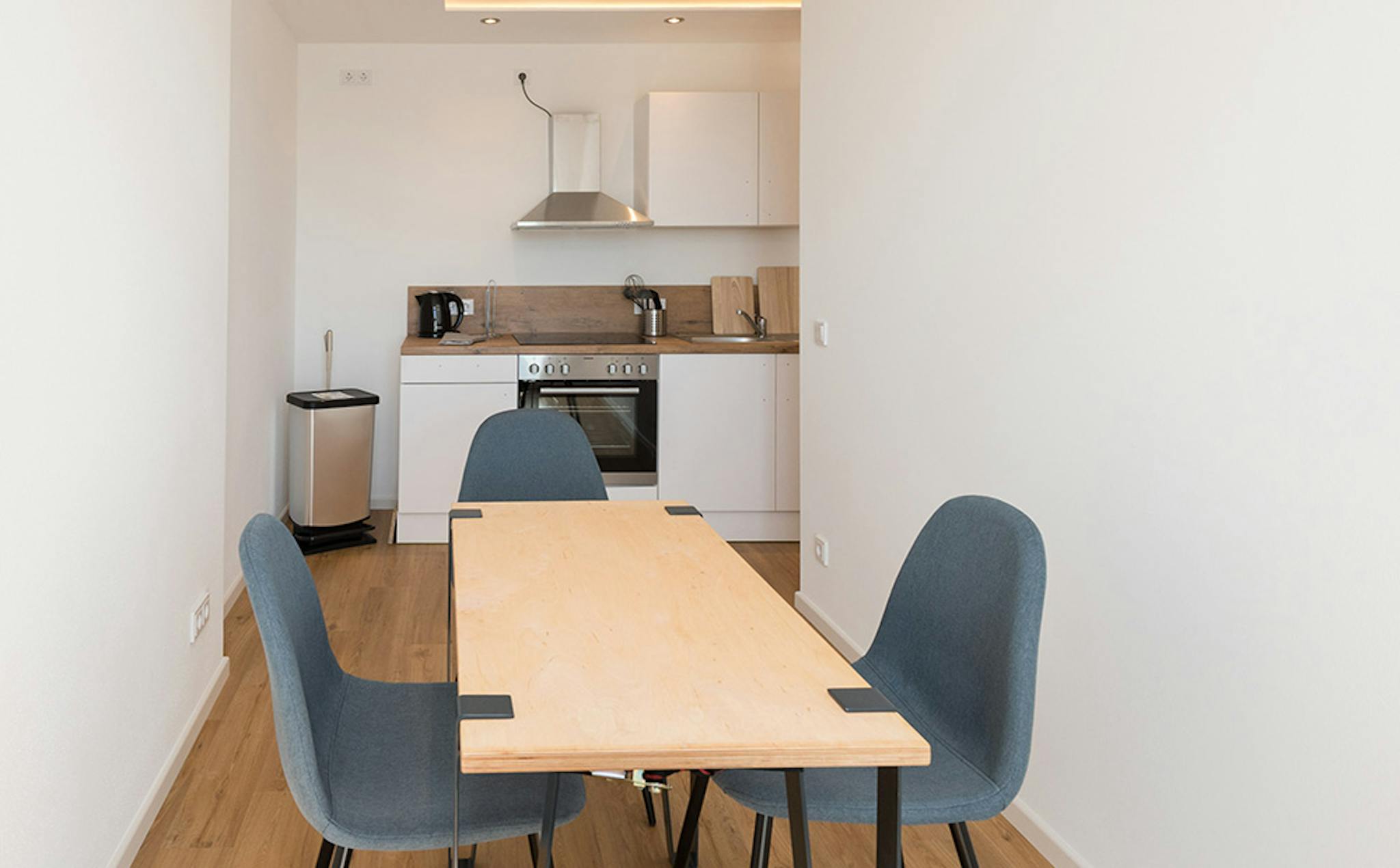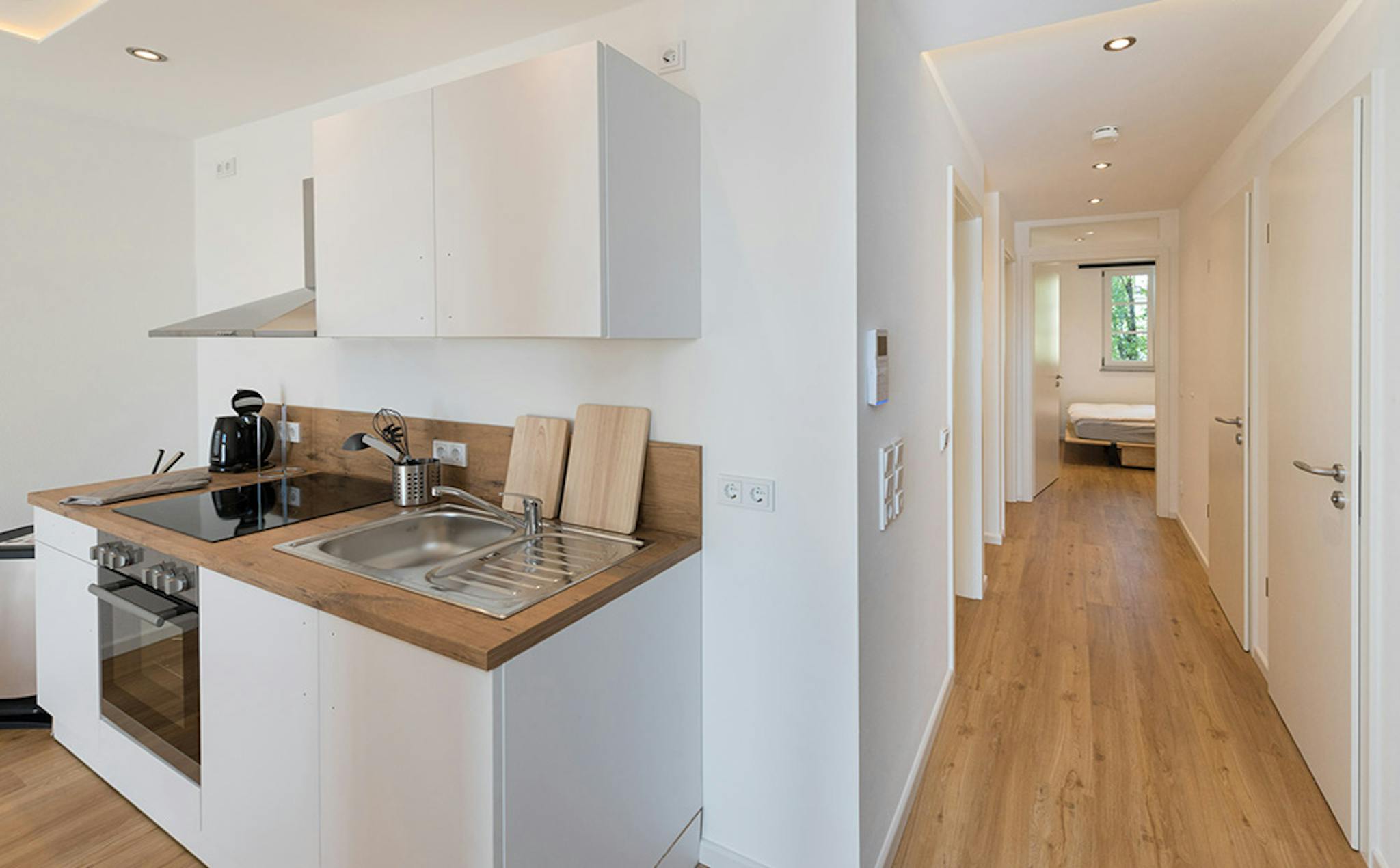 Our flats fulfil all your daily living requirements. Every flat comes readily equipped with a kitchen, including refrigerator, cooking equipment and dishes. Flats also include a washing machine and Wi-Fi Internet. Each room is fully furnished and offers a comfortable bed with fresh linen and a workspace. The area provides you with several shopping opportunities and excellent connections to public transport.
