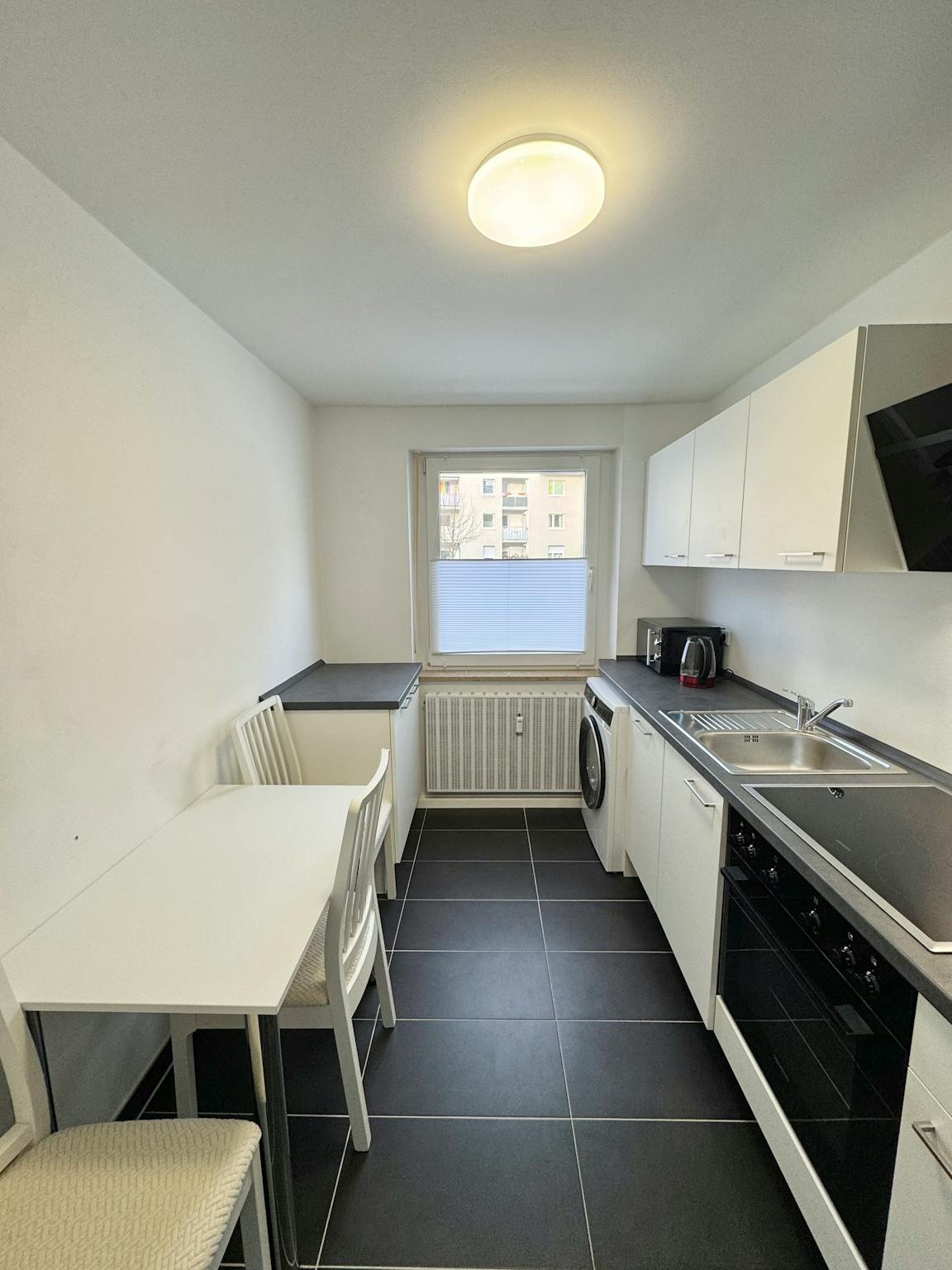 The apartment is located in a quiet, green neighborhood in Schwabing, perfect for relaxing after a busy day.