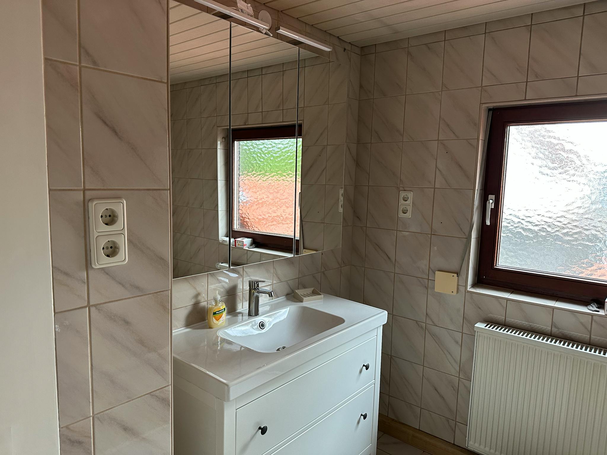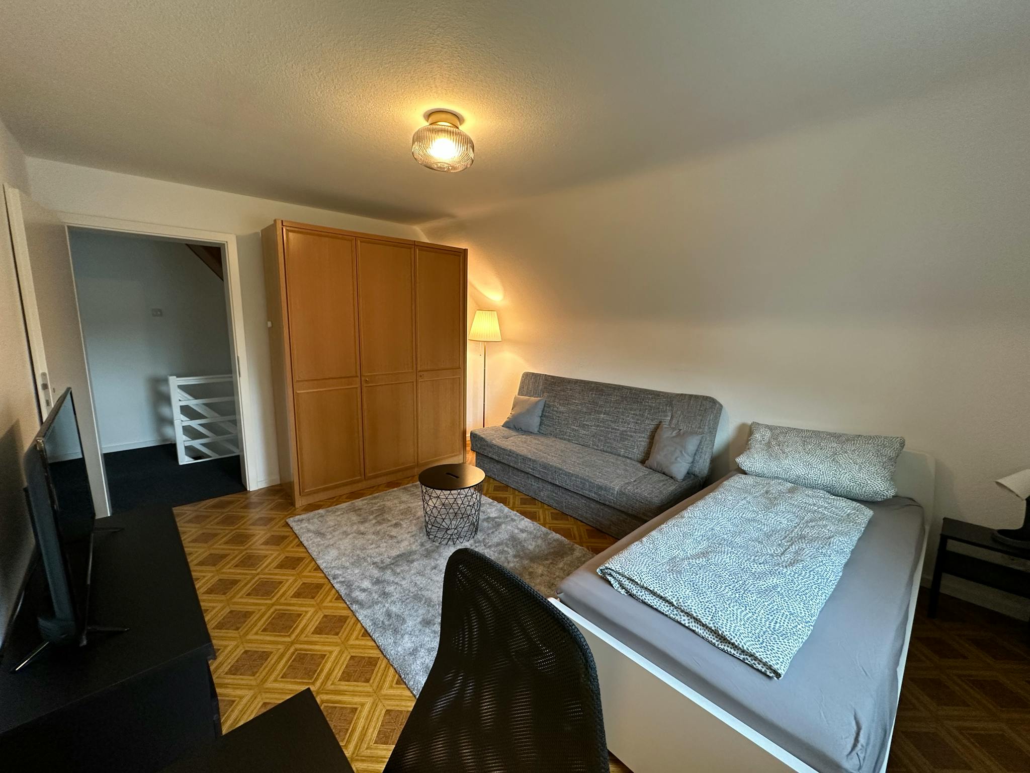 Room fully equipped incl. TV, and you can use the shared rooms like kitchen, 1 bathroom with shower & bathtub, 2 seperate toilets, 1 separate shower, washing machine, dryer, fully equipped kitchen including induction hob, oven, microwave, dish washer and large fridge/ freezer combo. You also have access to the Starlink Internet access of the house.