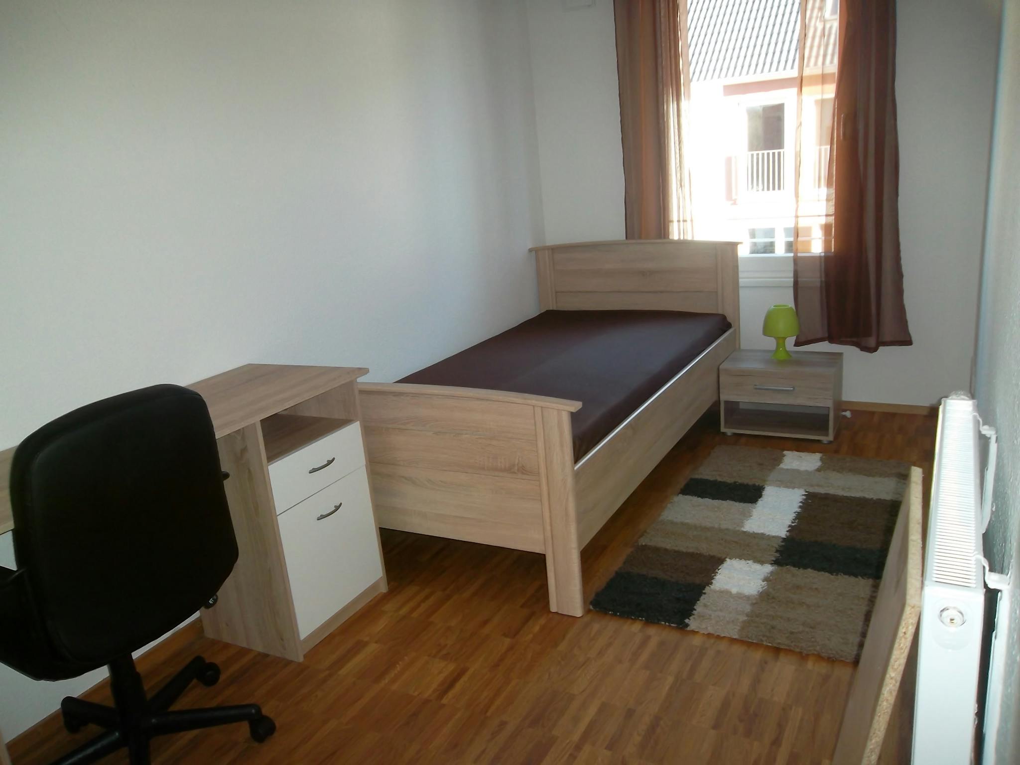 Furnished room in a newly built house with shared living room, kitchen, bathroom, laundry, and all basic facilities.