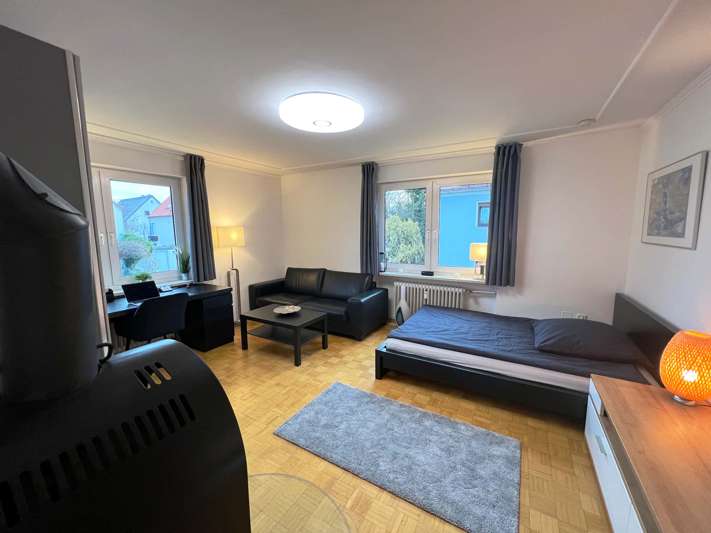 The newly fully-furnished room is part of a 91 sqm apartment in Munich and comprises the whole first floor of the building.