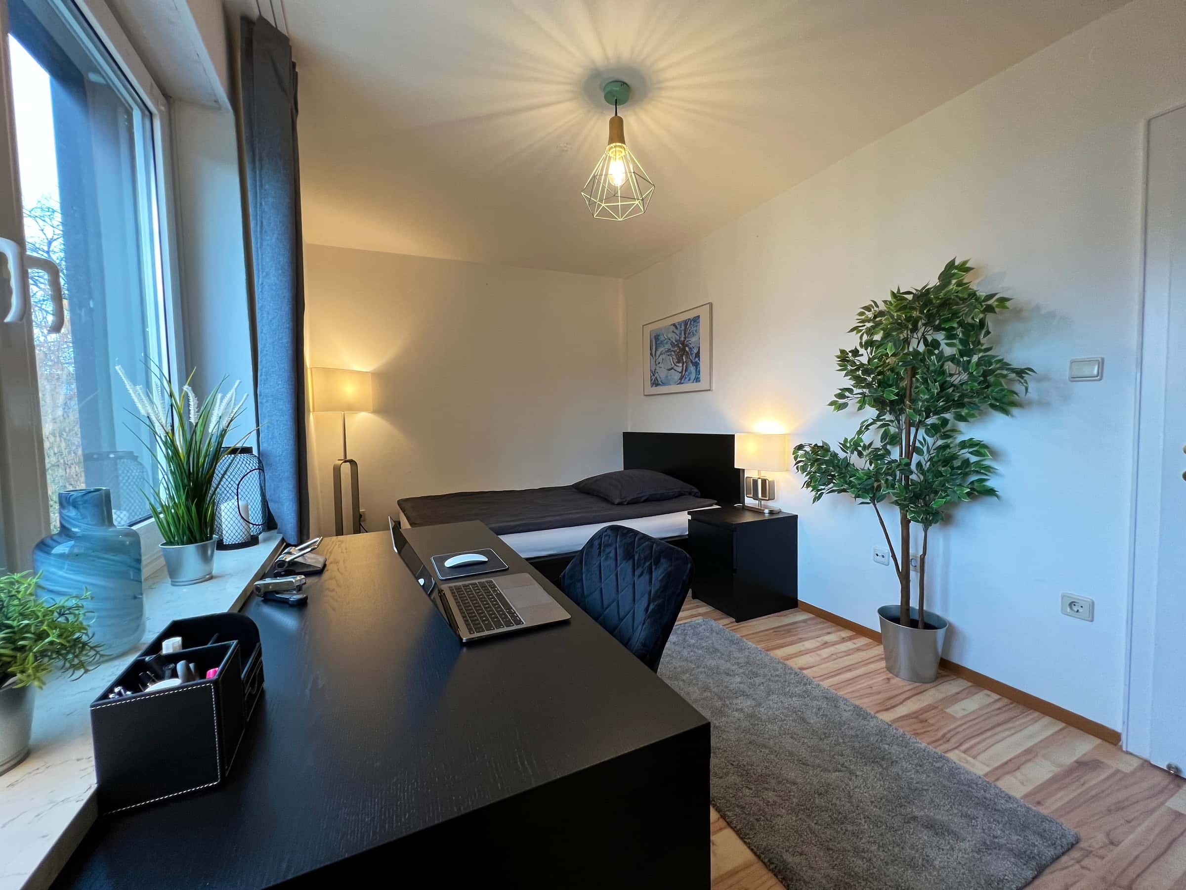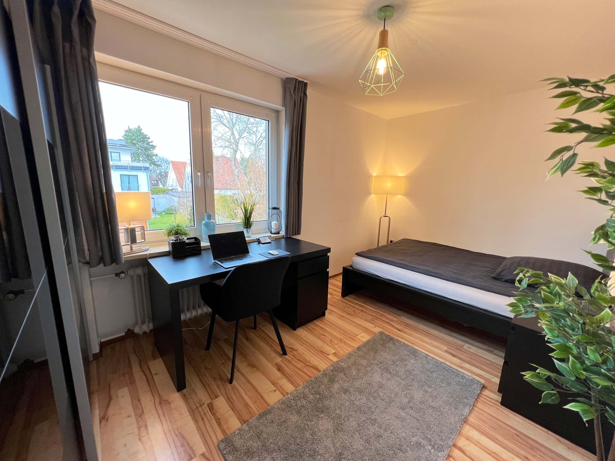 The newly fully-furnished room is part of a 91 sqm apartment in Munich and comprises the whole first floor of the building.