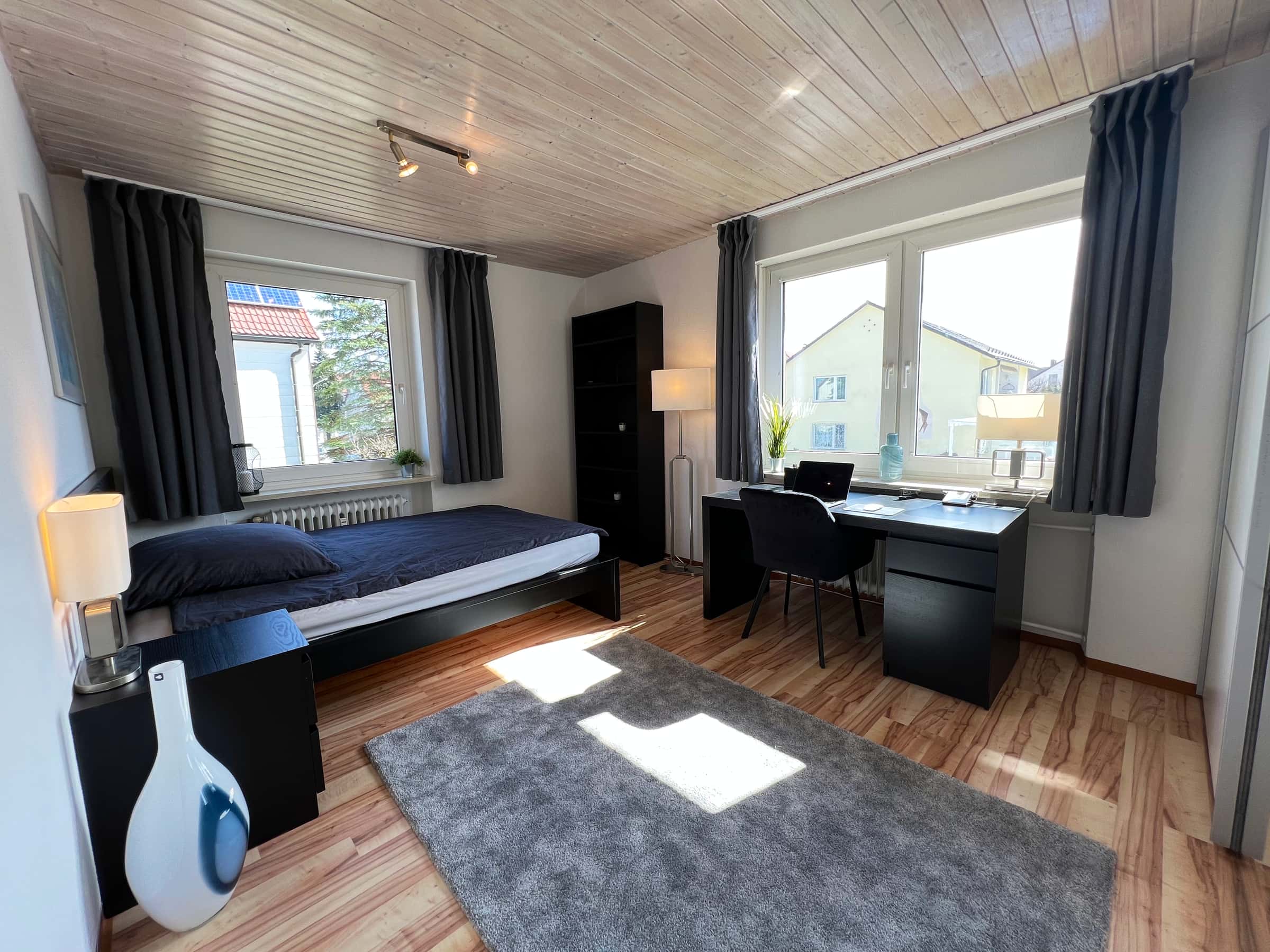 The newly fully-furnished room is part of a 91 sqm apartment in Munich and comprises the whole first floor of the building.